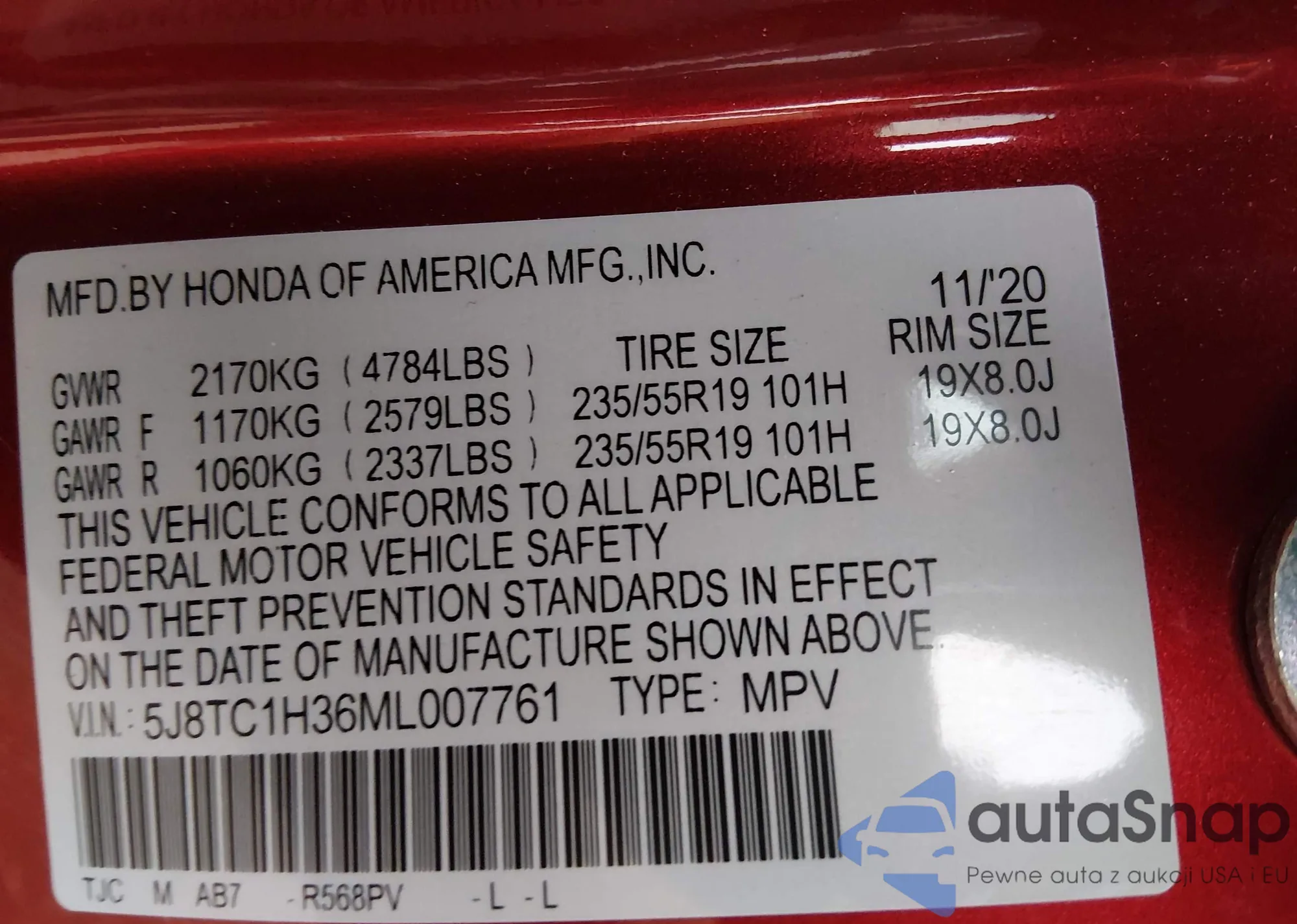 • VIN 5J8TC2H6XML808581