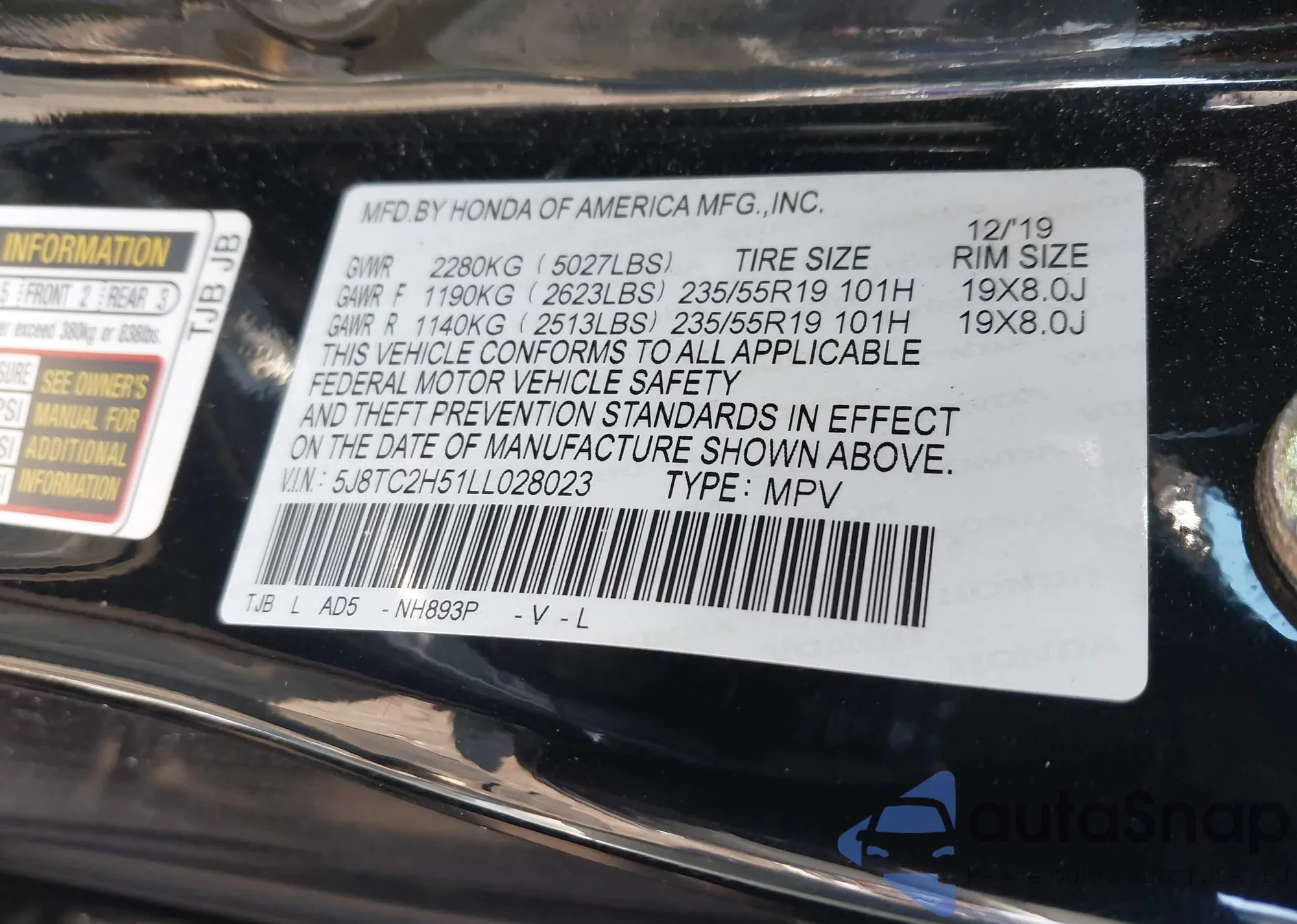 • VIN 5J8TC2H51LL028023