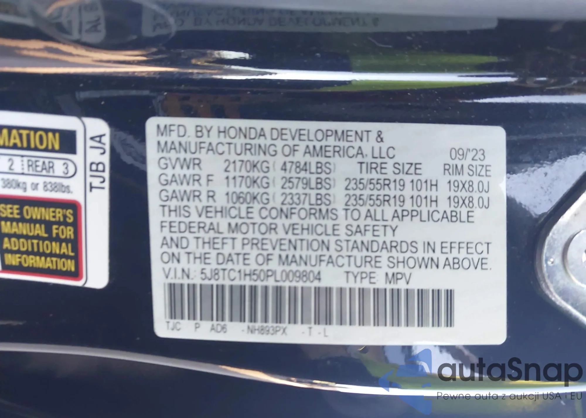 • VIN 5J8TC1H50PL009804