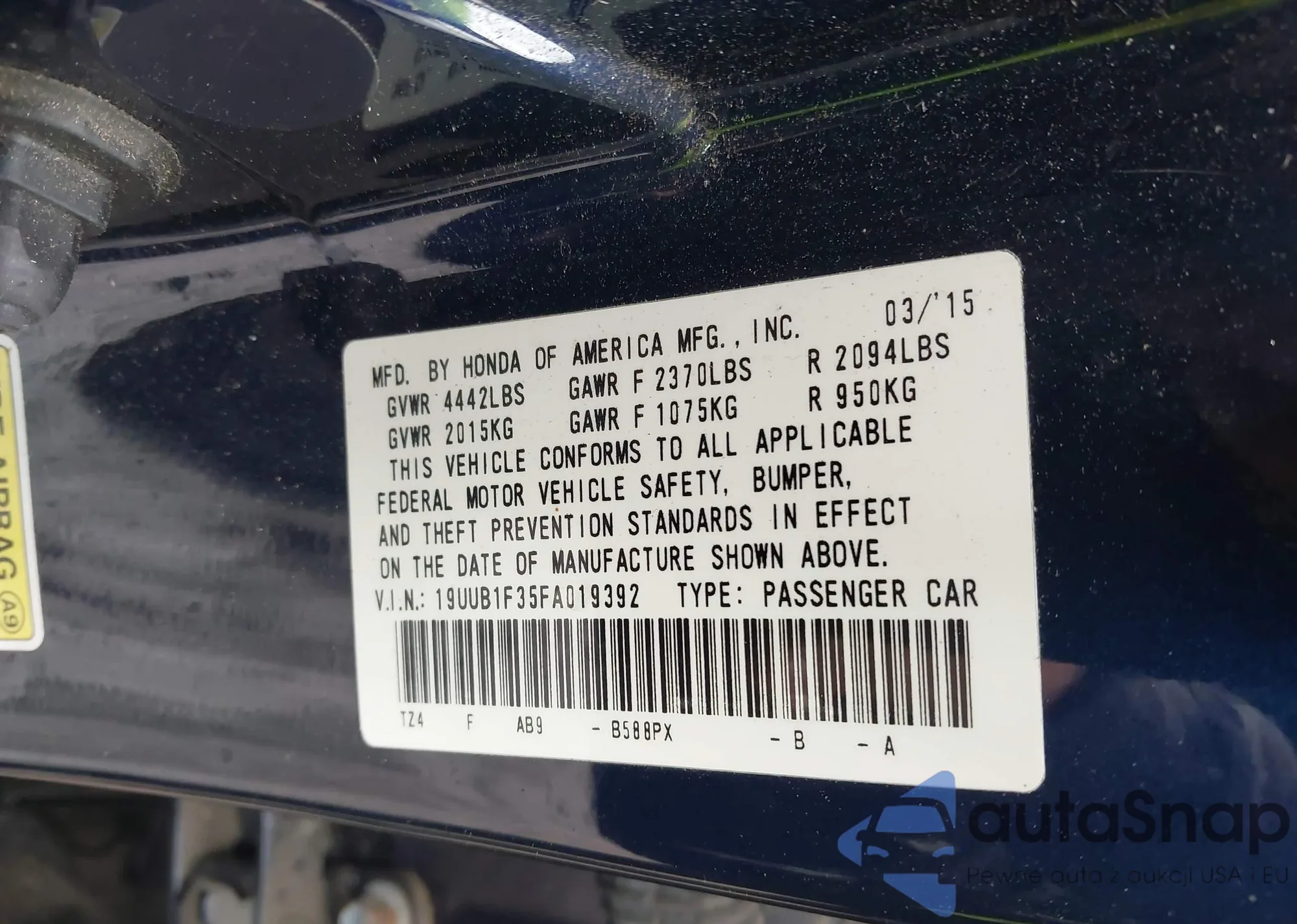 • VIN 19UUB1F35FA019392
