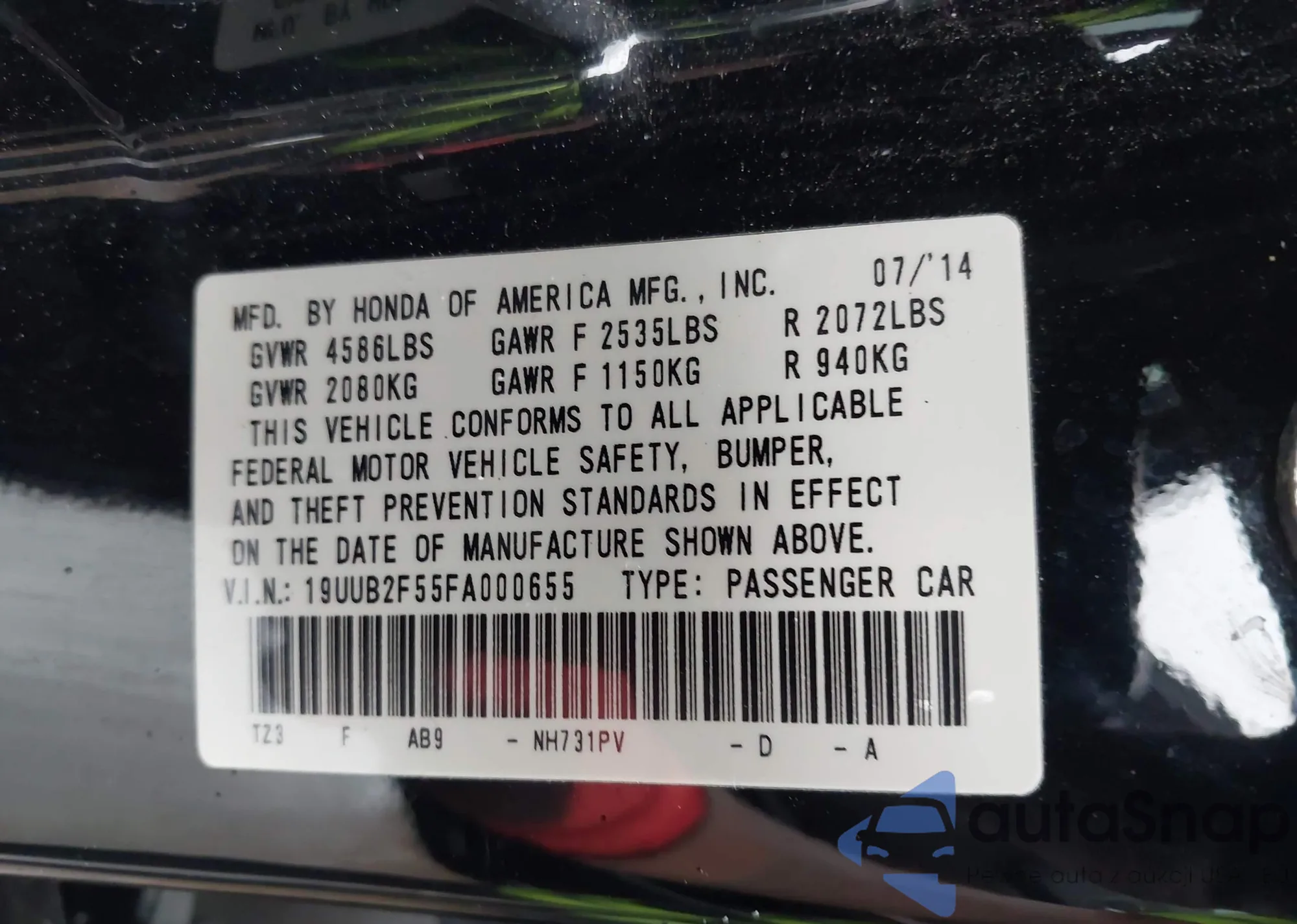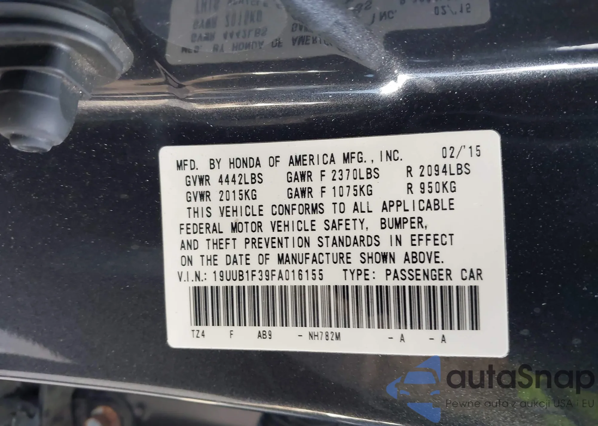 • VIN 19UUB1F39FA016155