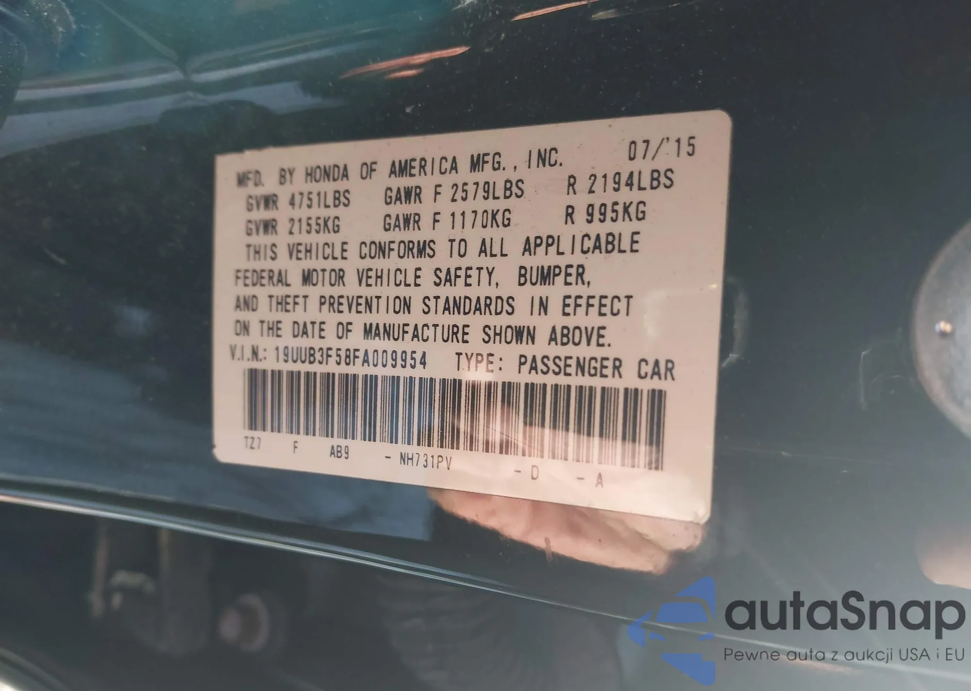 • VIN 19UUB3F58FA009954