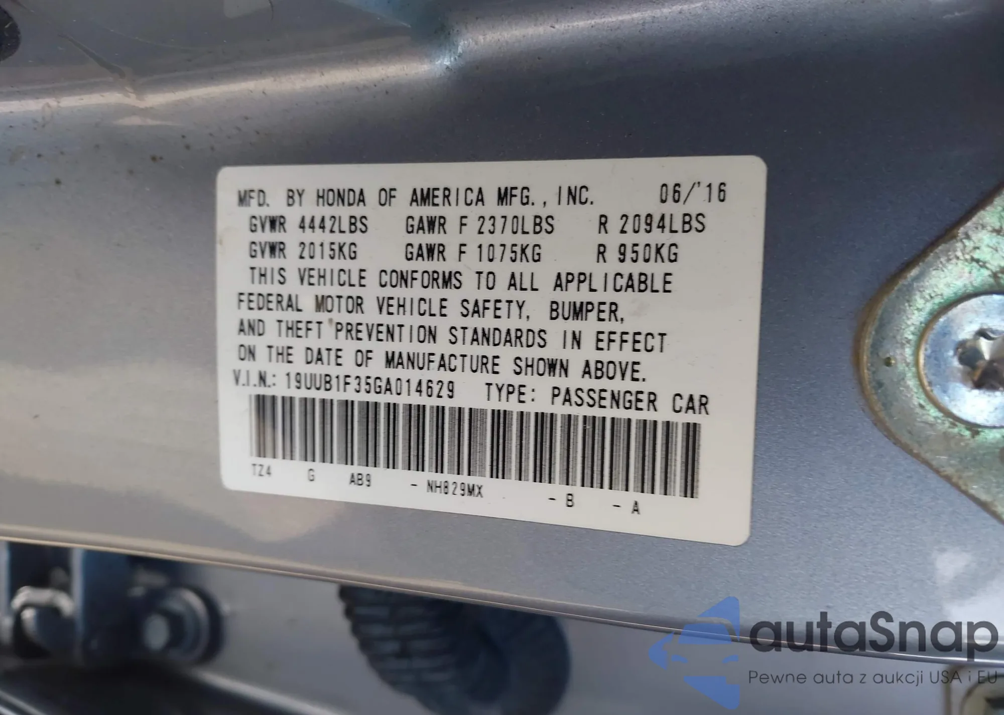 • VIN 19UUB1F35GA014629
