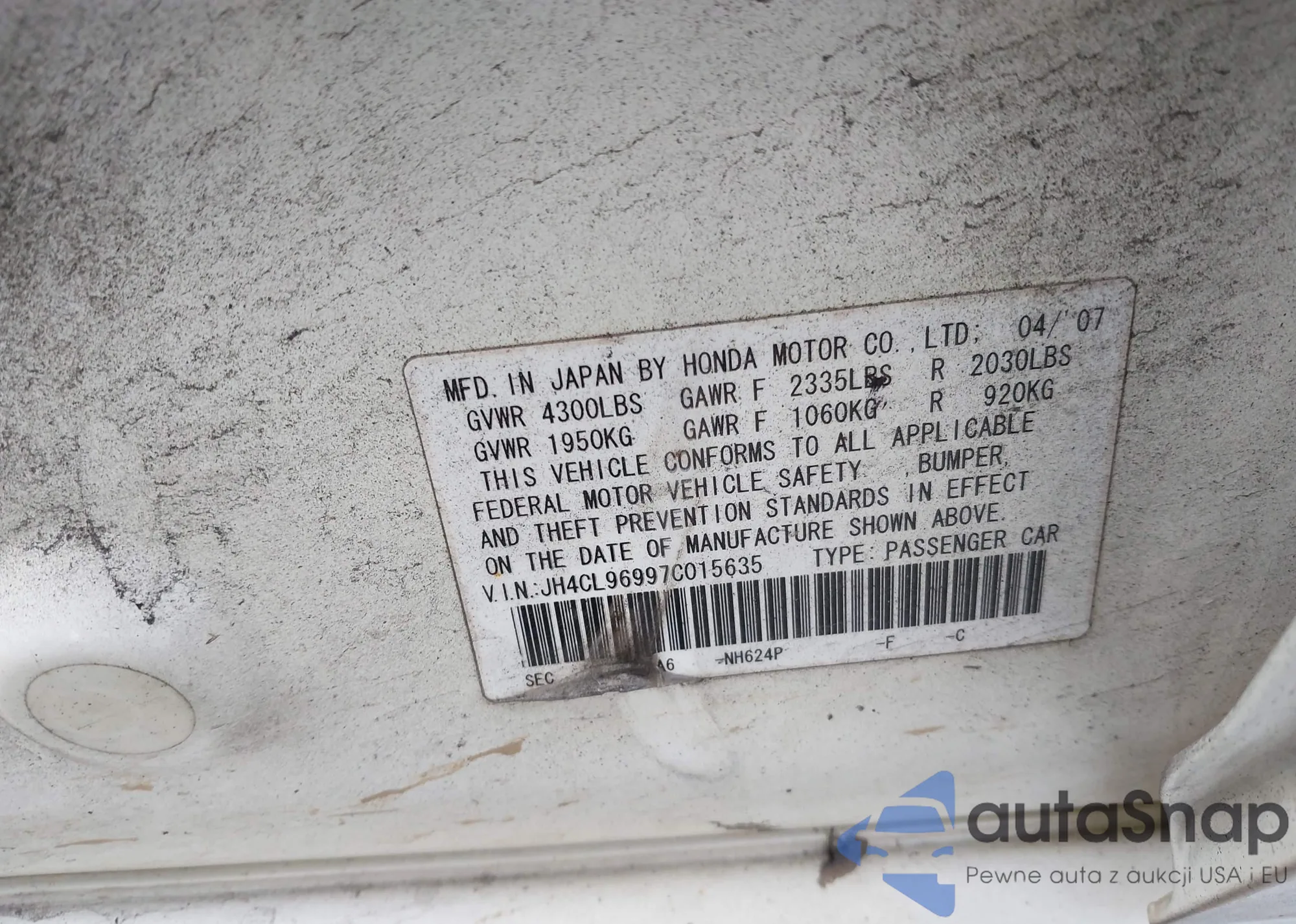 LOT: 44183987 VIN: JH4CL96997C015635