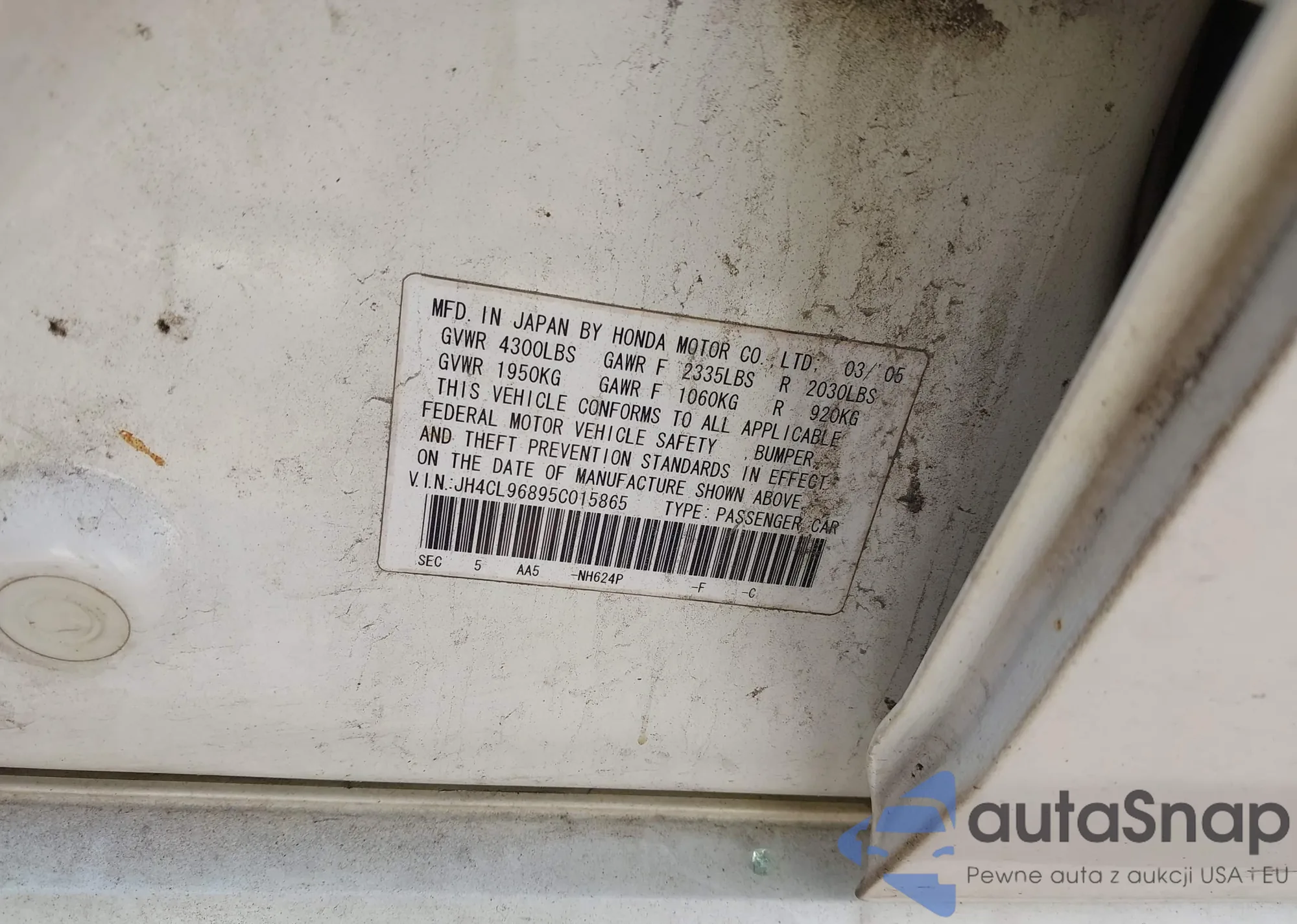 LOT: 43344268 VIN: JH4CL96895C015865