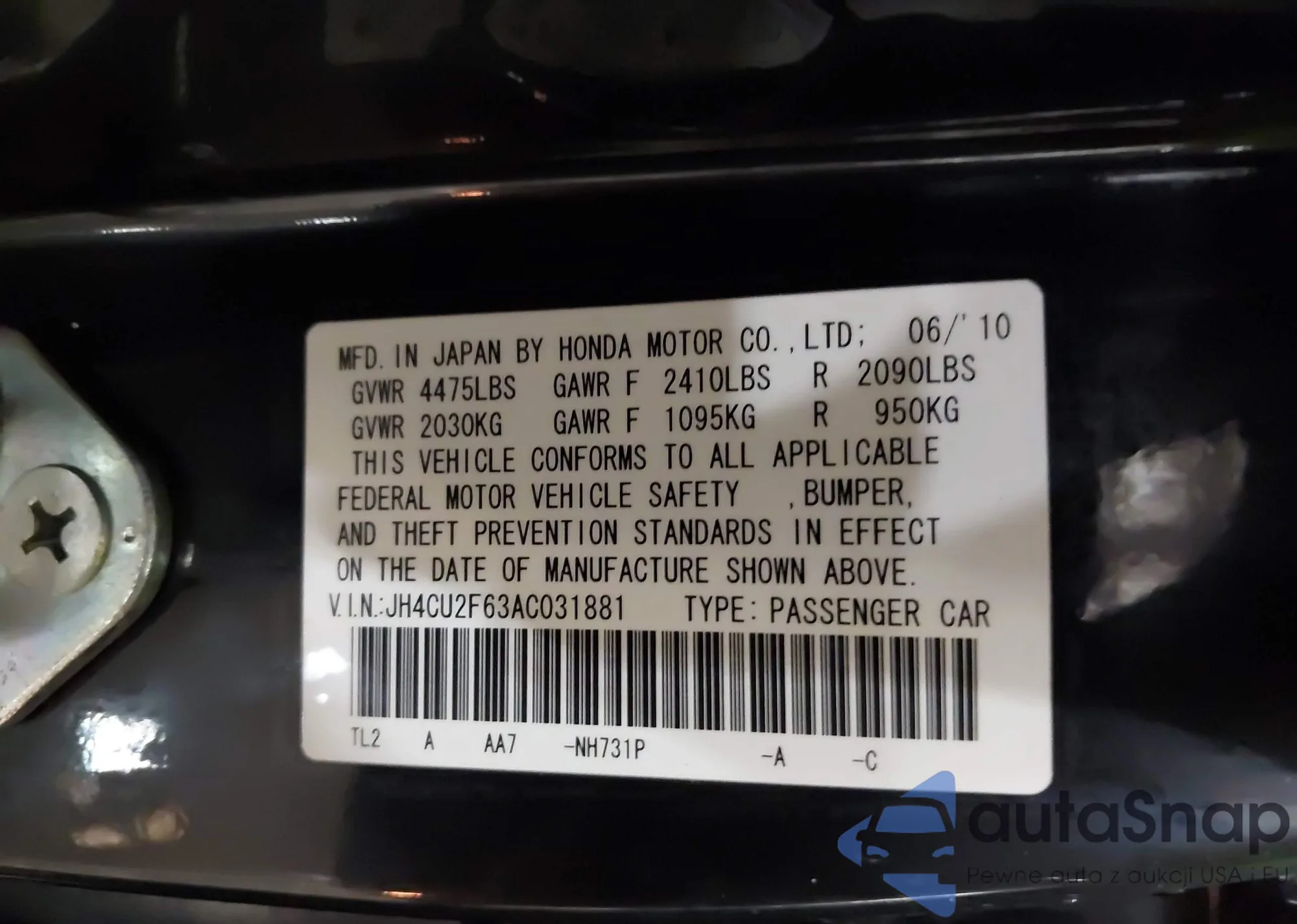 • VIN JH4CW2H68BC002627