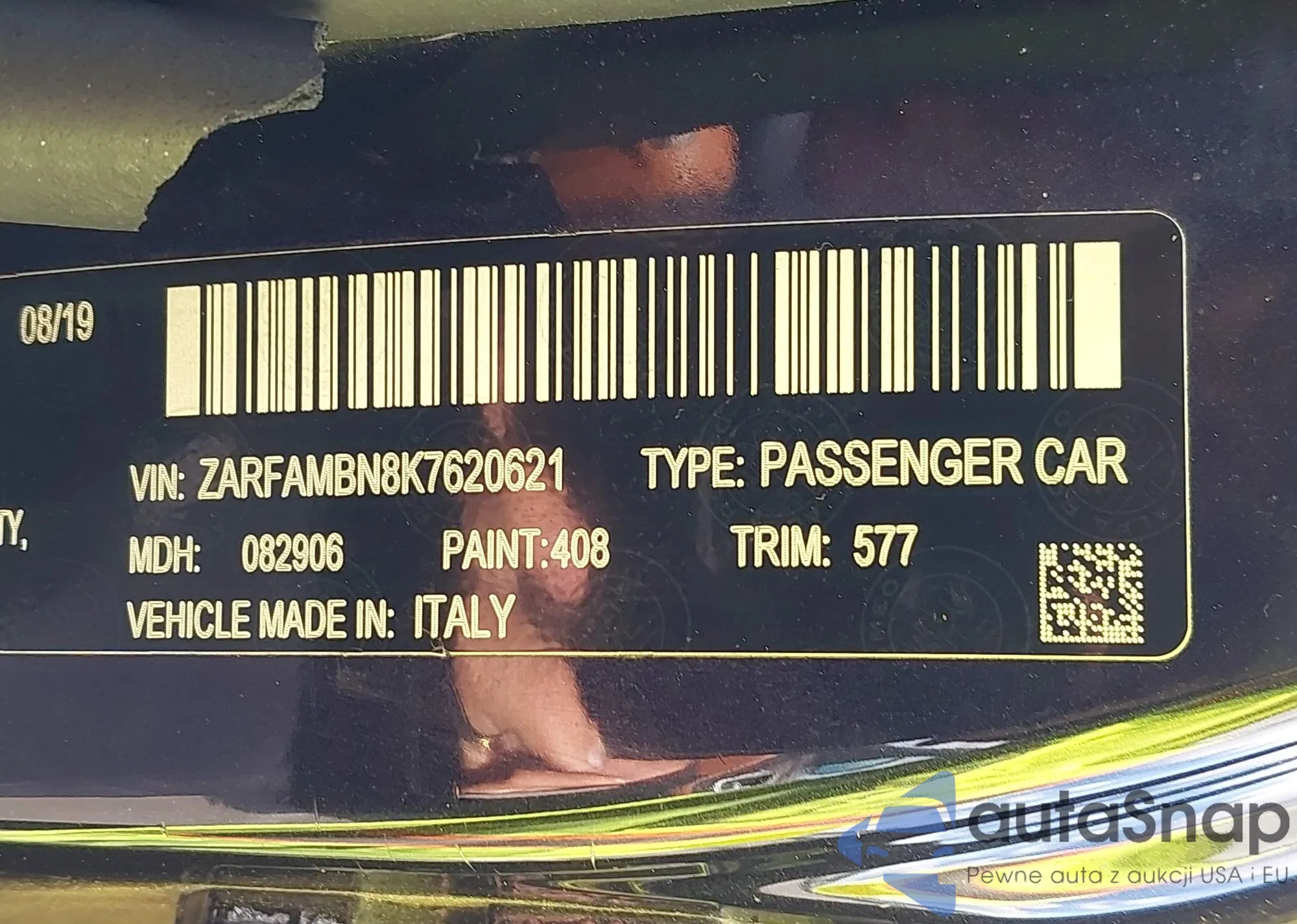 LOT: 43899304 VIN: ZARFAMBN8K7620621