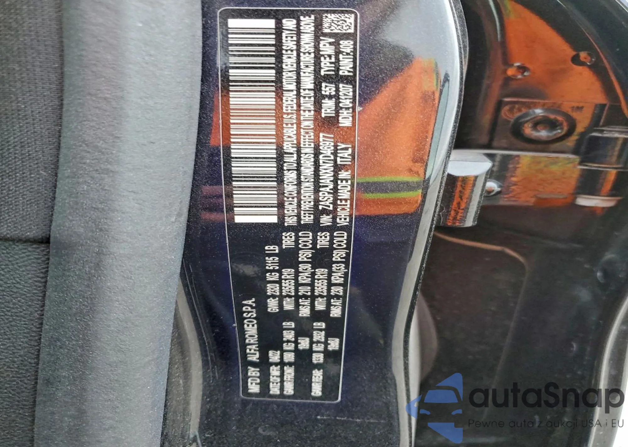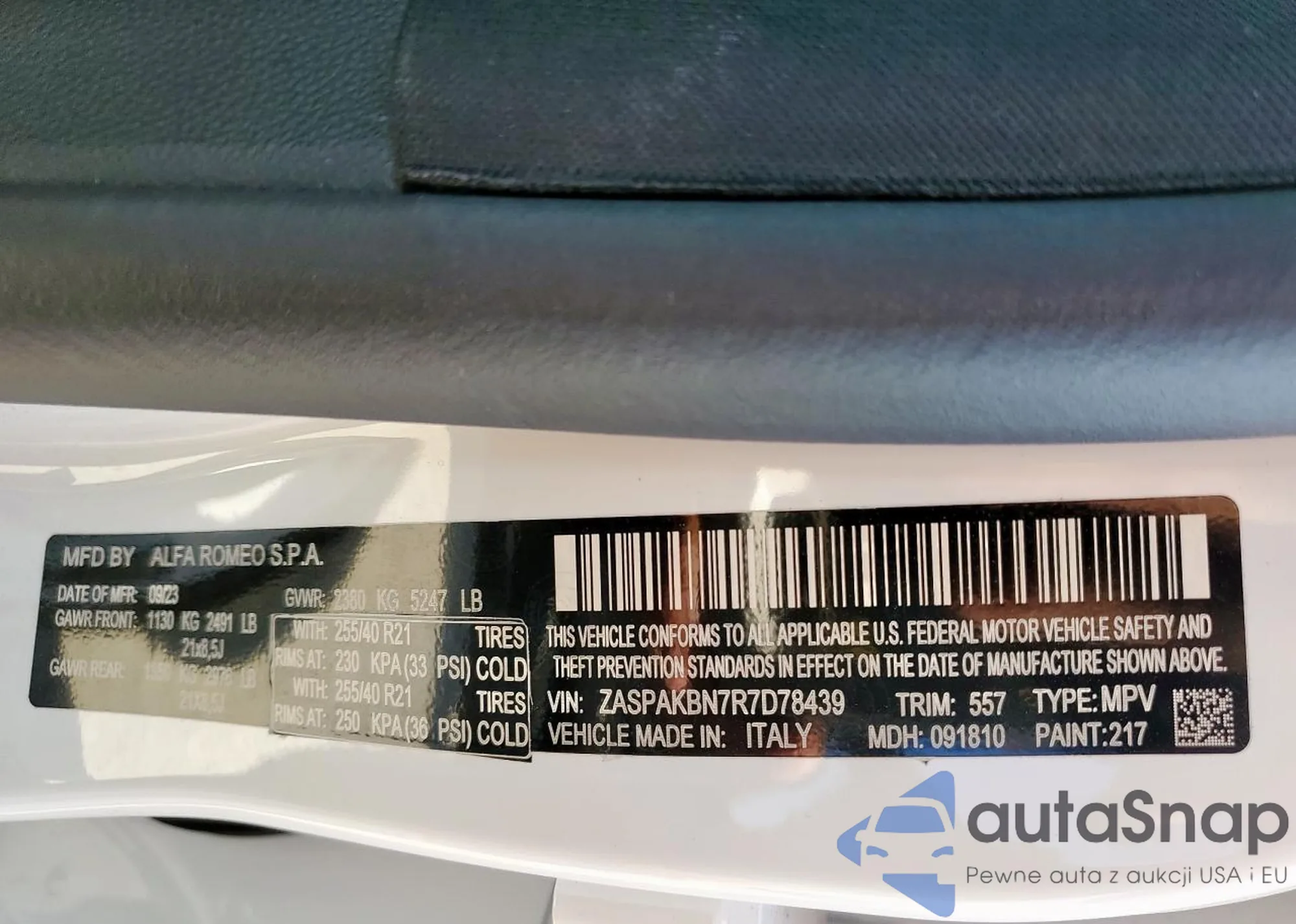 LOT: 73118455 VIN: ZASPAKAN7M7D11219