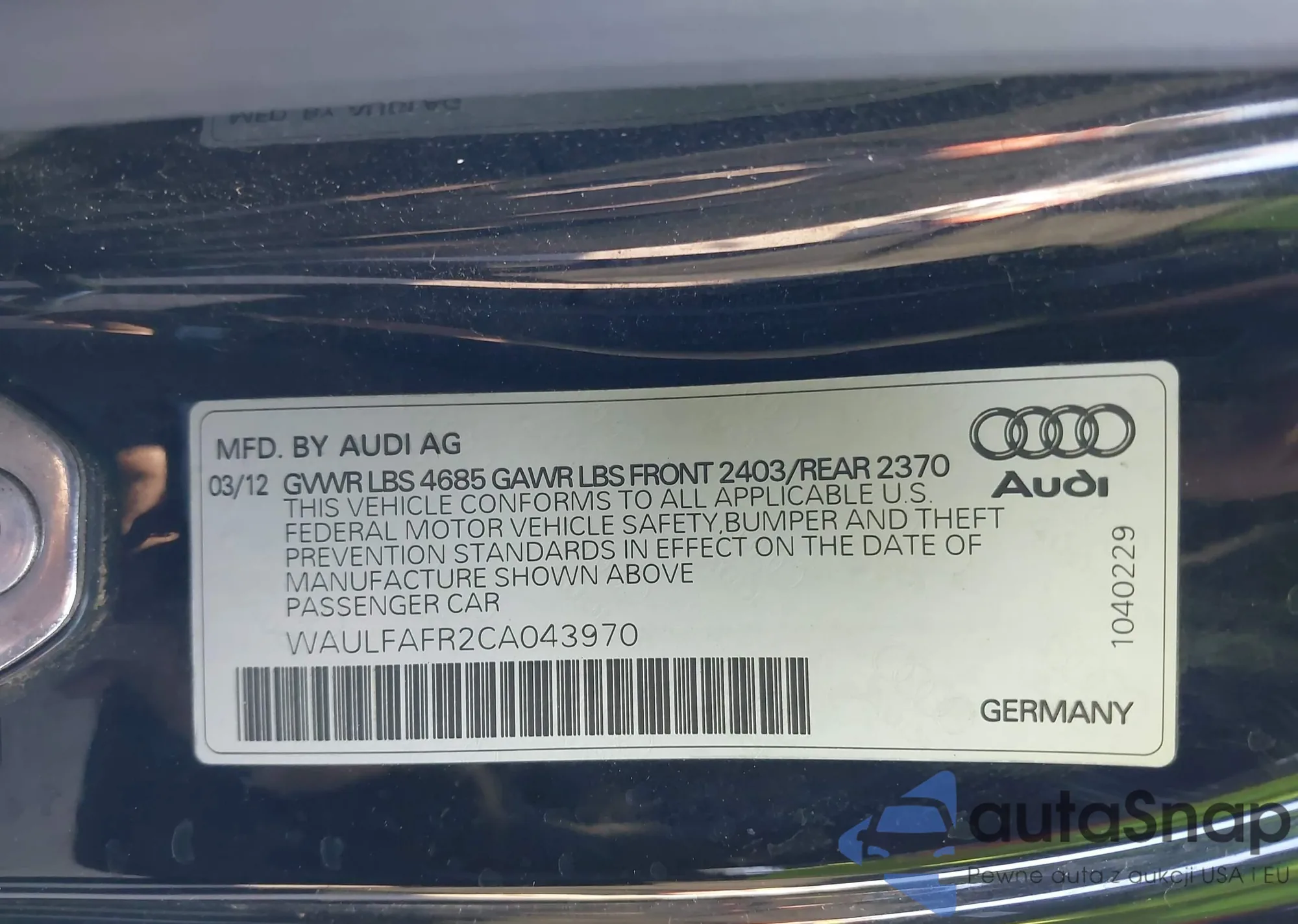 • VIN WAULFAFR2CA043970