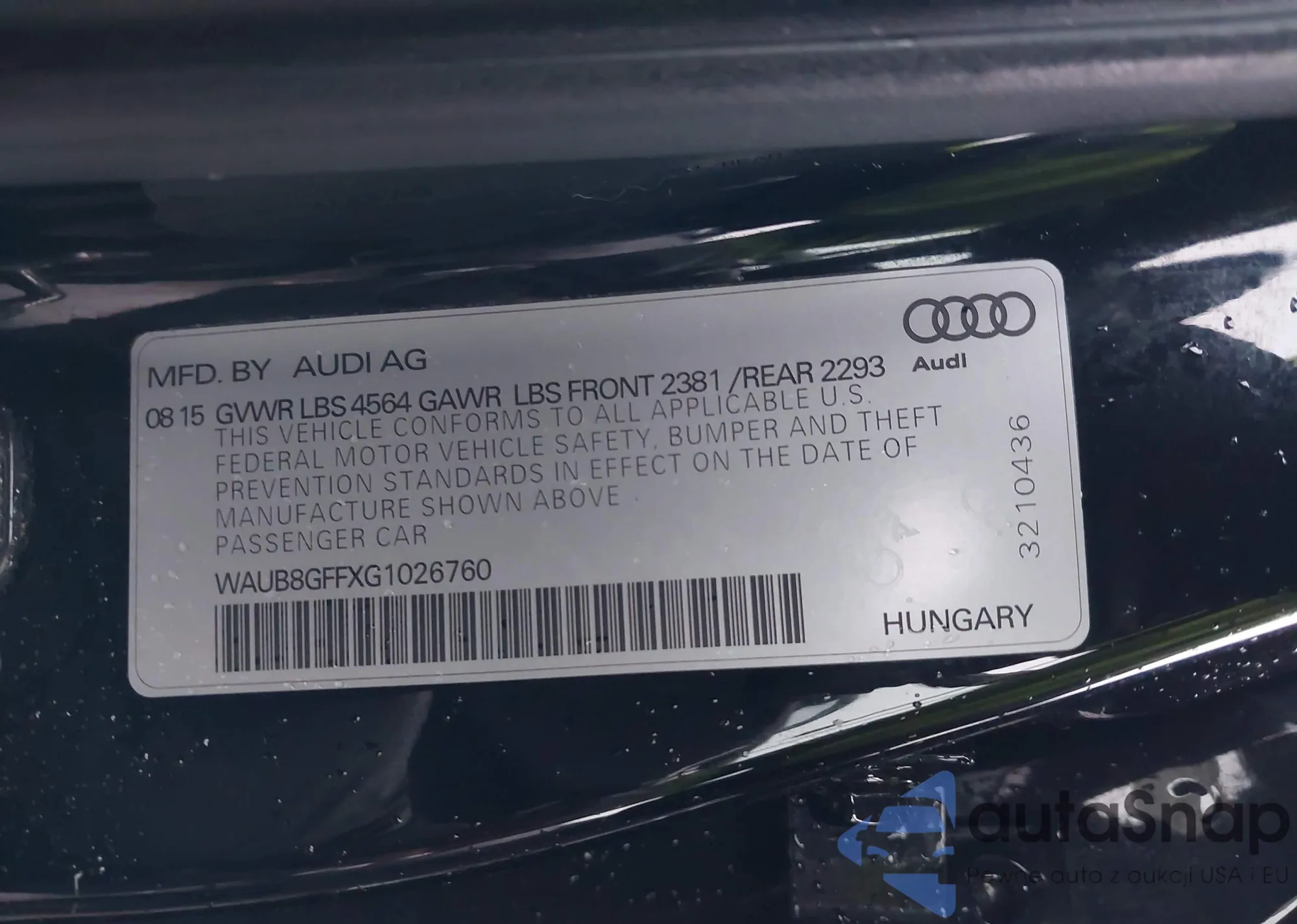 LOT: 44032643 VIN: WAUB8GFFXG1026760