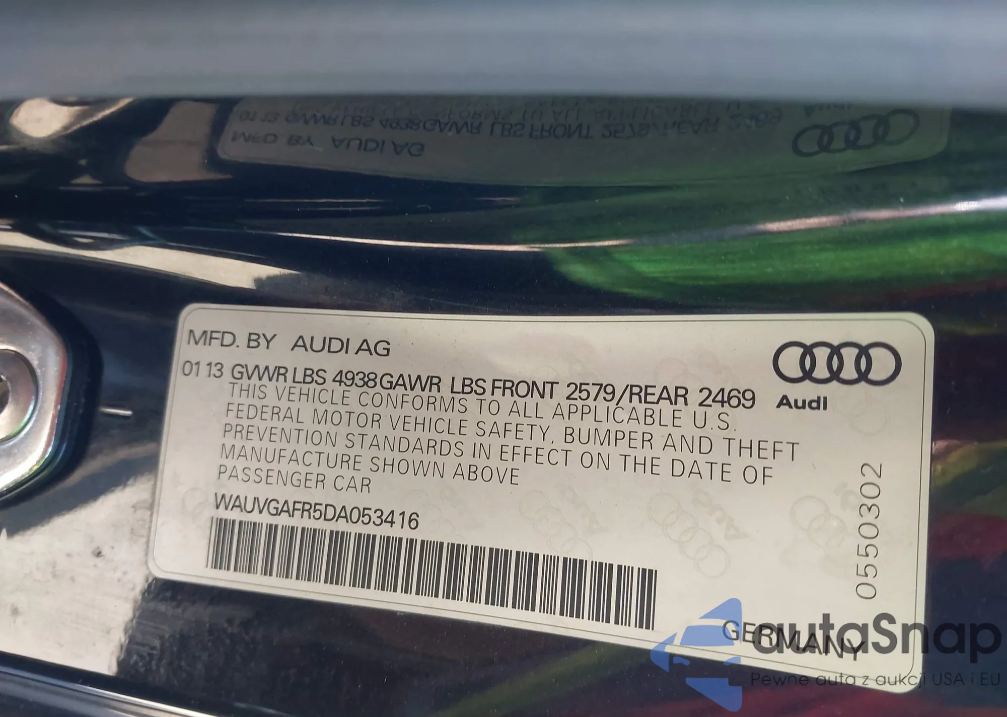 • VIN WAUVGAFR5DA053416