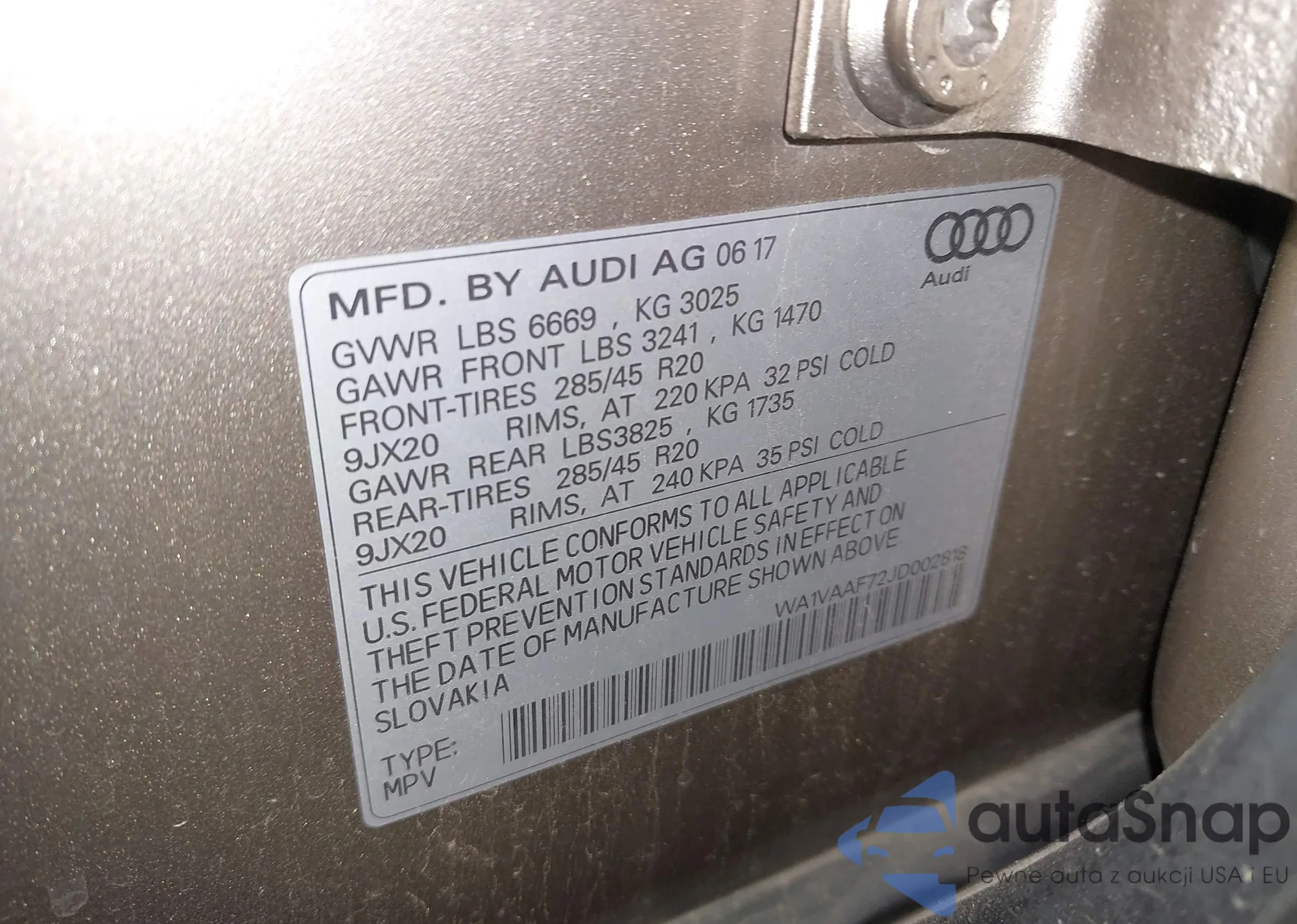 • VIN WA1VAAF72JD002818
