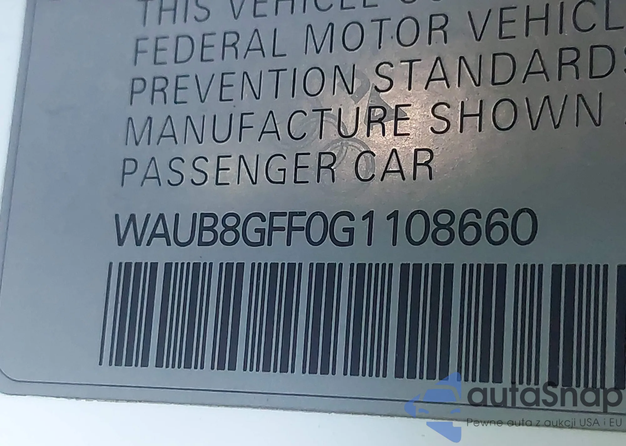 • VIN WAUA7HFF5G1109081