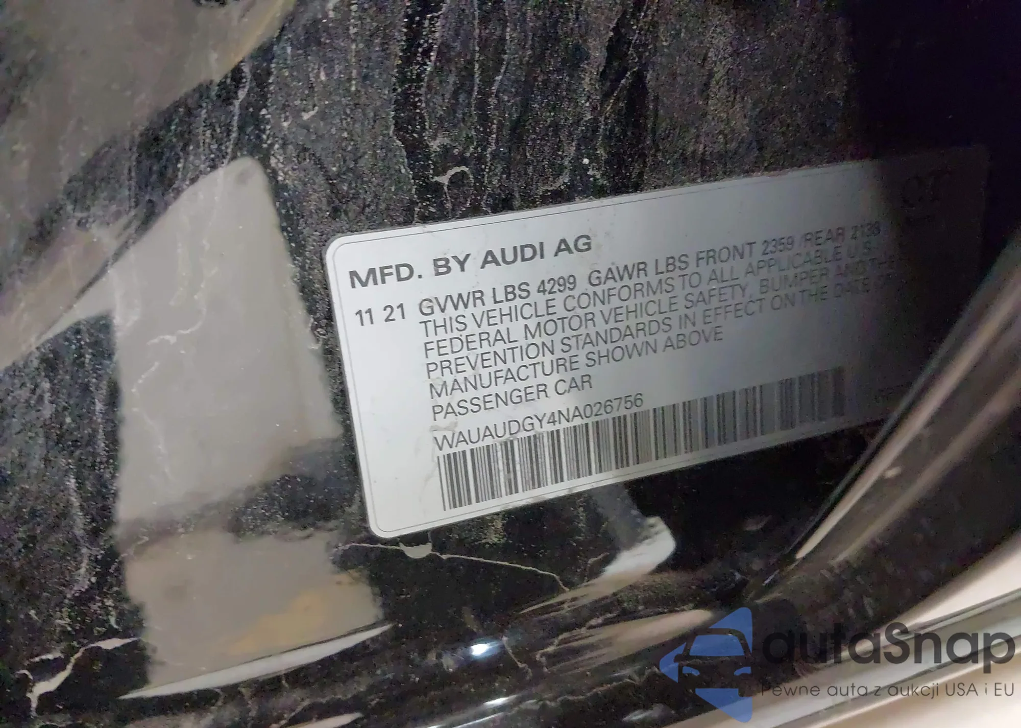 LOT: 98725325 VIN: WAUGUDGY0NA066391
