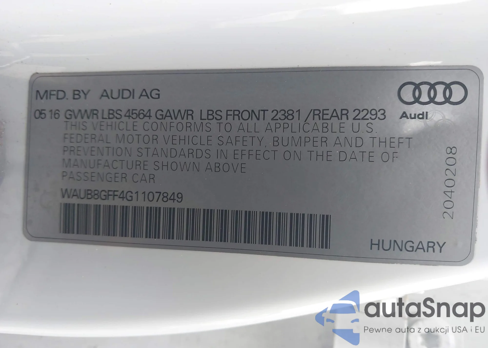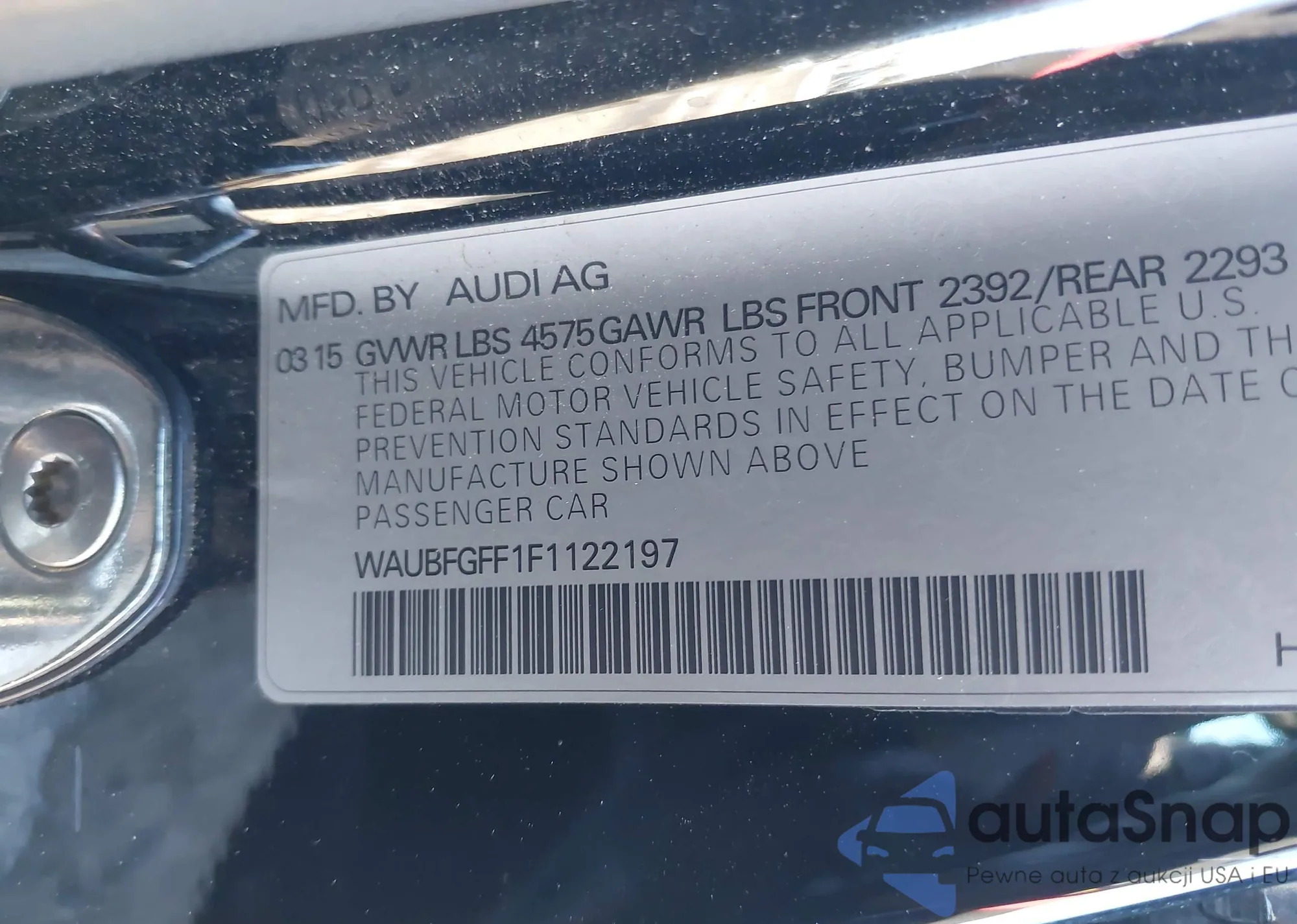 LOT: 44057335 VIN: WAUBFGFF4F1104793
