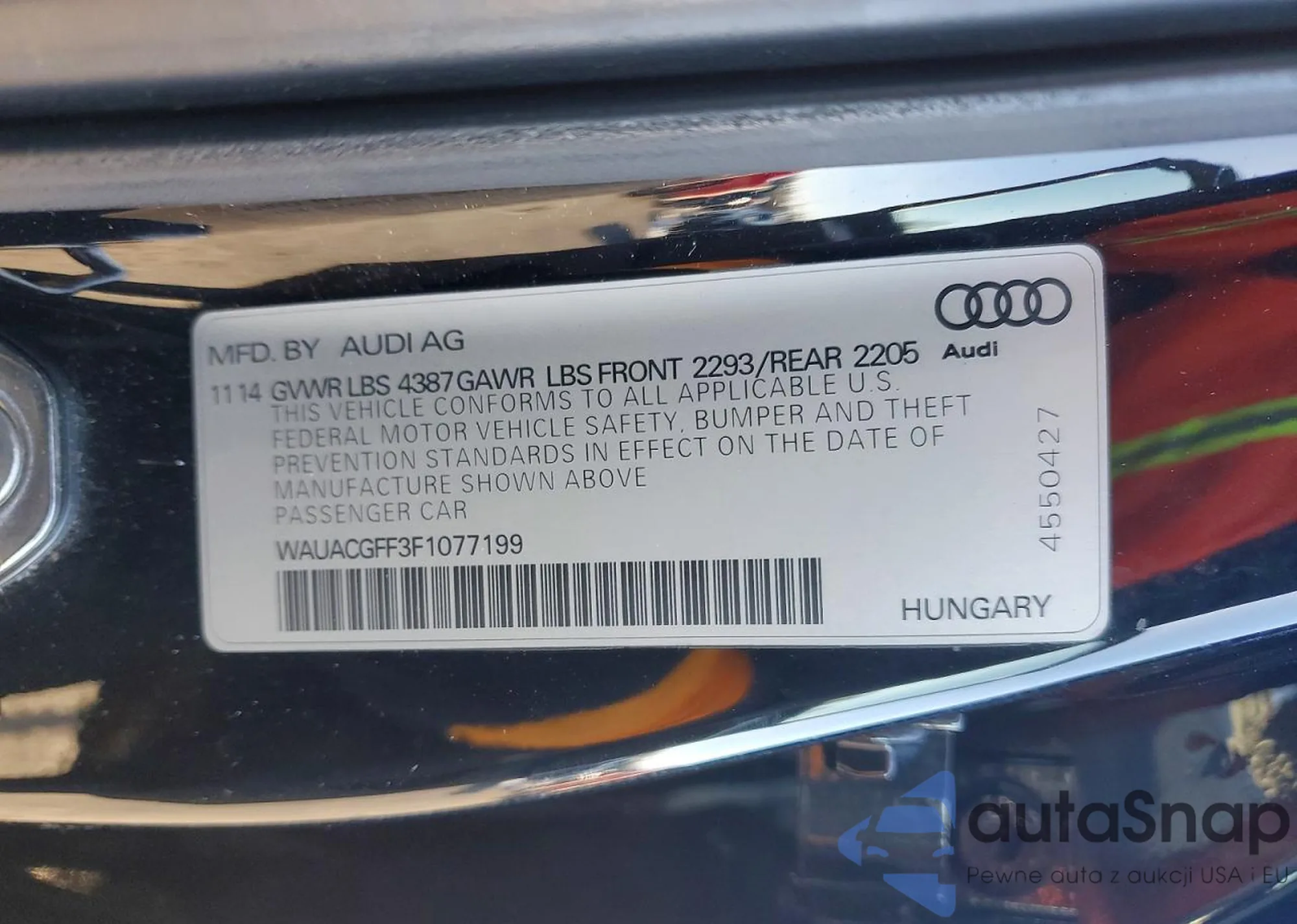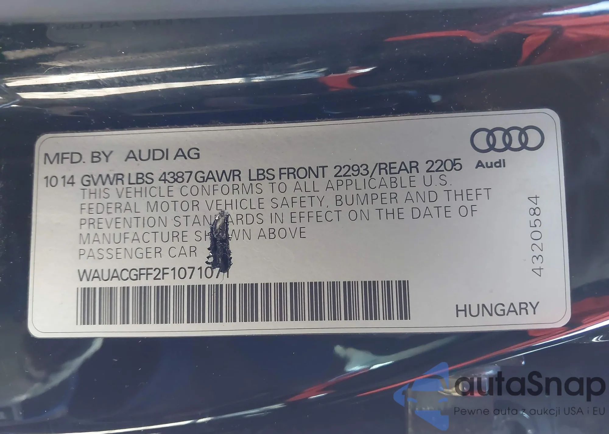 LOT: 44255637 VIN: WAUACGFF2F1071071