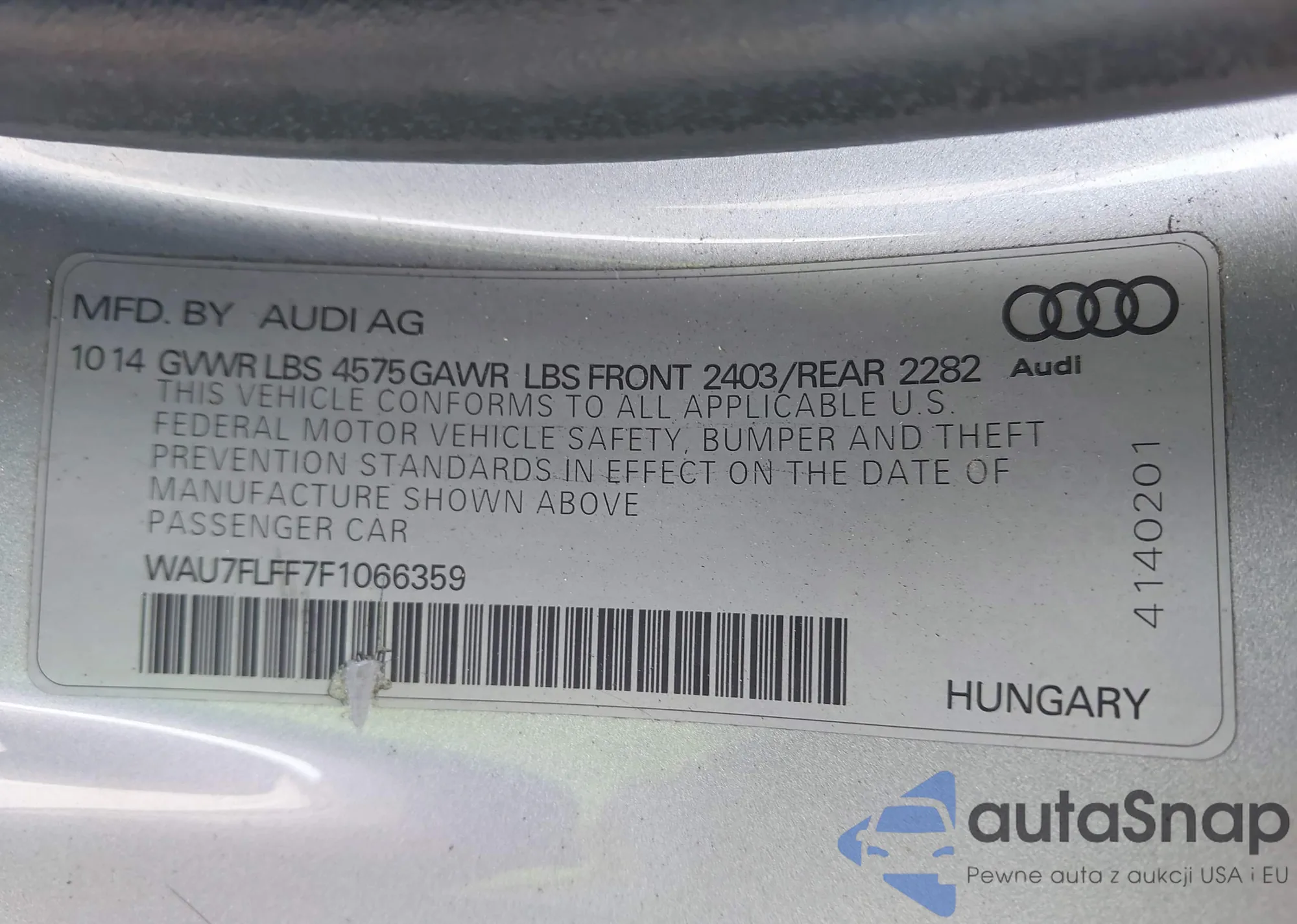 • VIN WAU7FLFF7F1066359