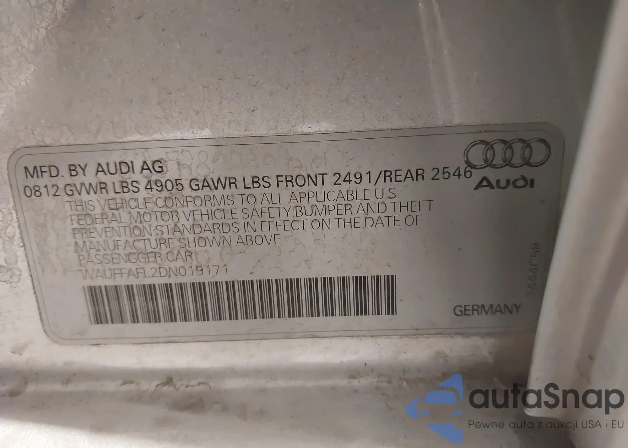 LOT: 44526203 VIN: WAUFFAFL2DN019171