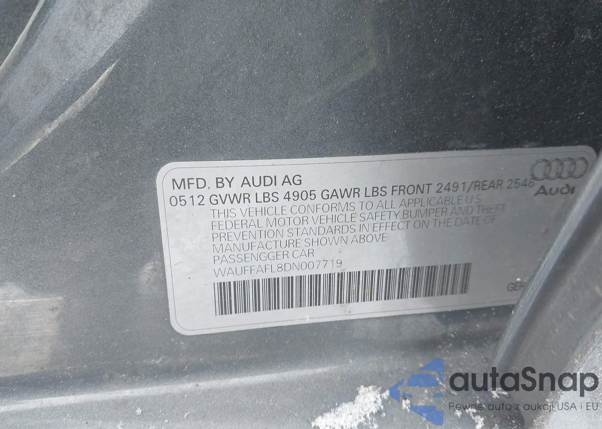 • VIN WAUFFAFL8DN007719