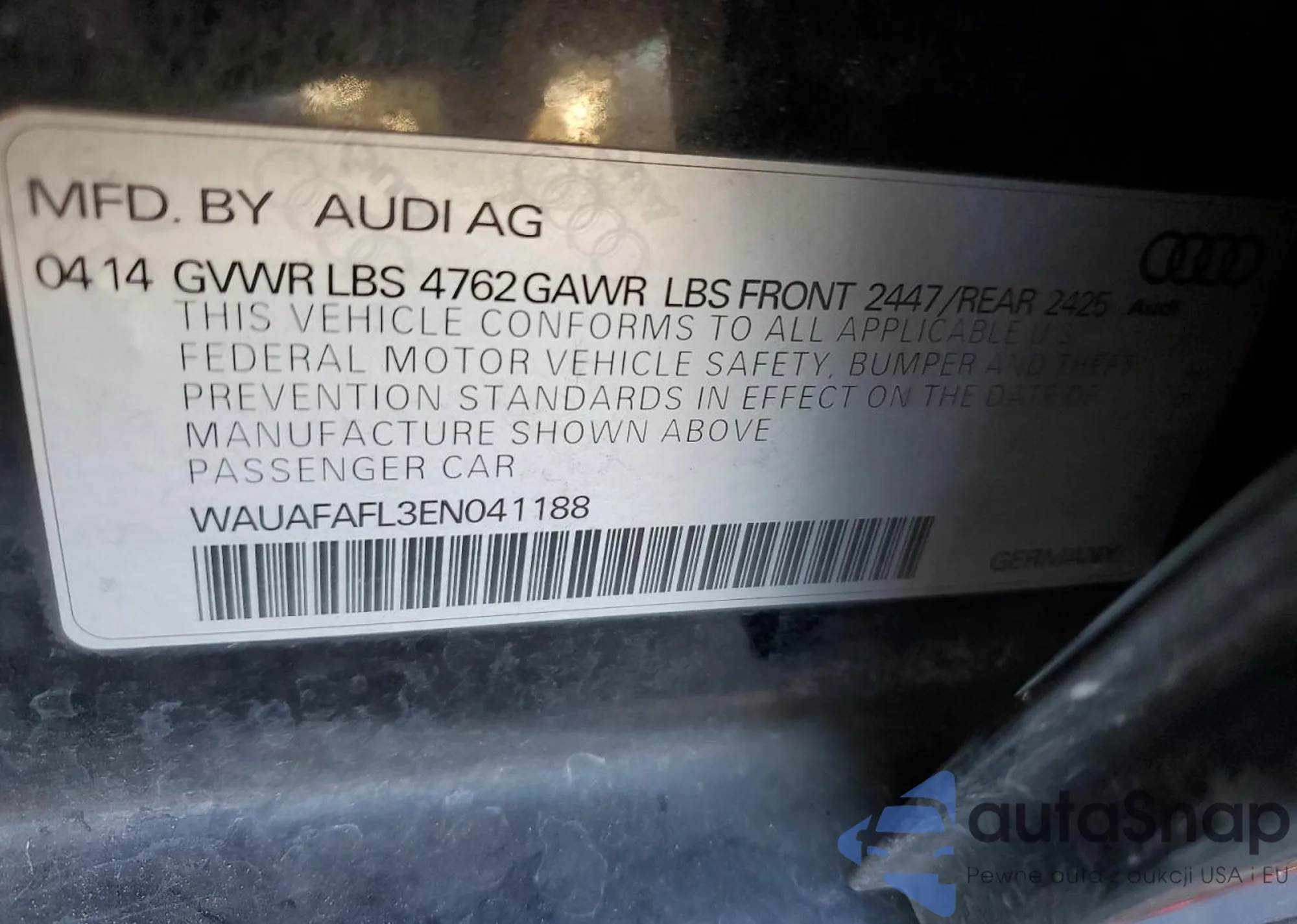 • VIN WAUAFAFL3EN041188
