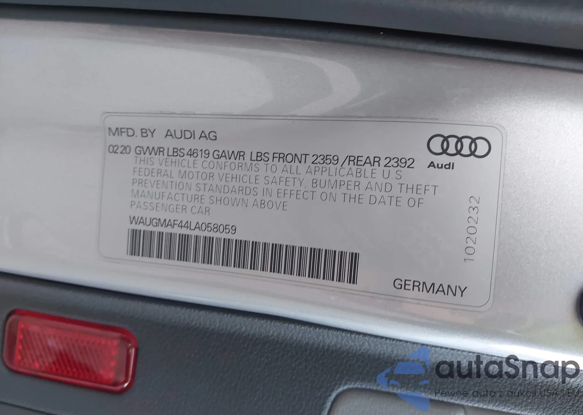 • VIN WAUGMAF44LA058059