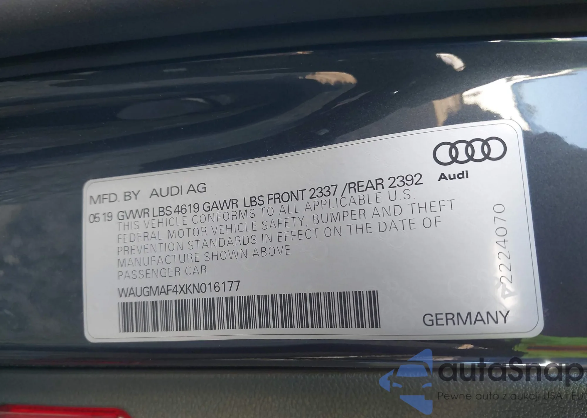 • VIN WAUGMAF4XKN016177