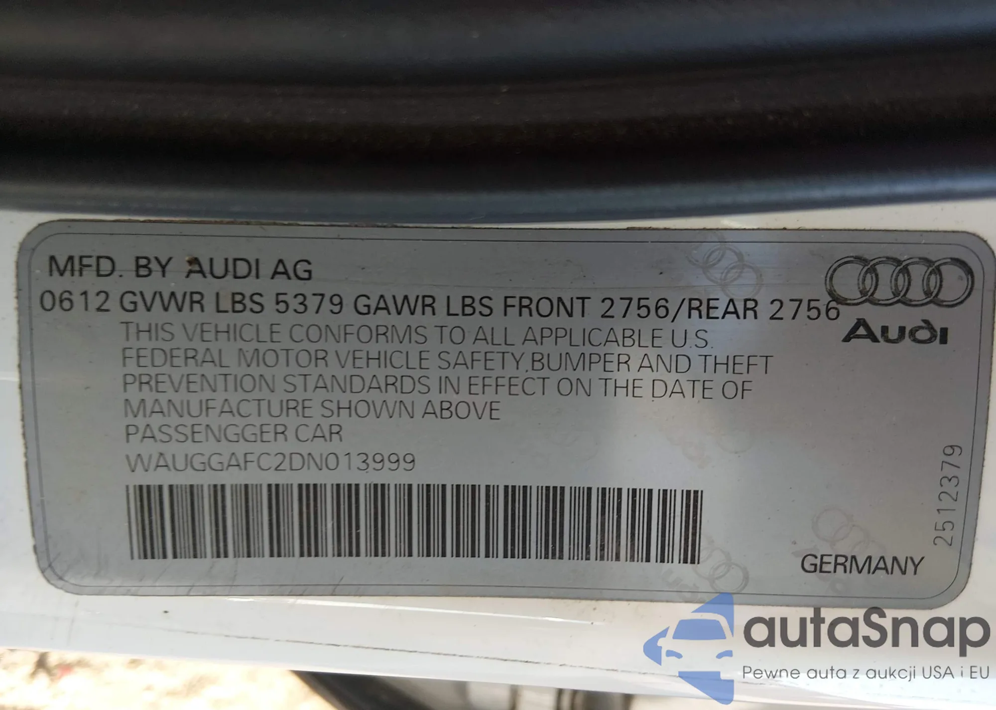LOT: 44325097 VIN: WAUGFAFC6DN024880