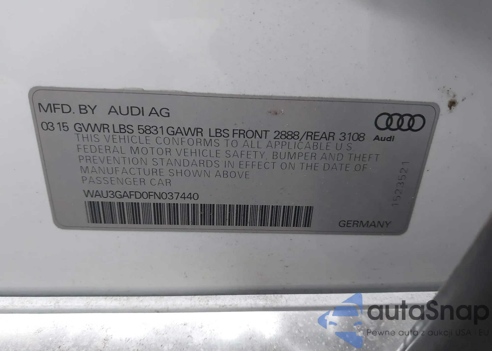 • VIN WAU3GAFD0FN037440