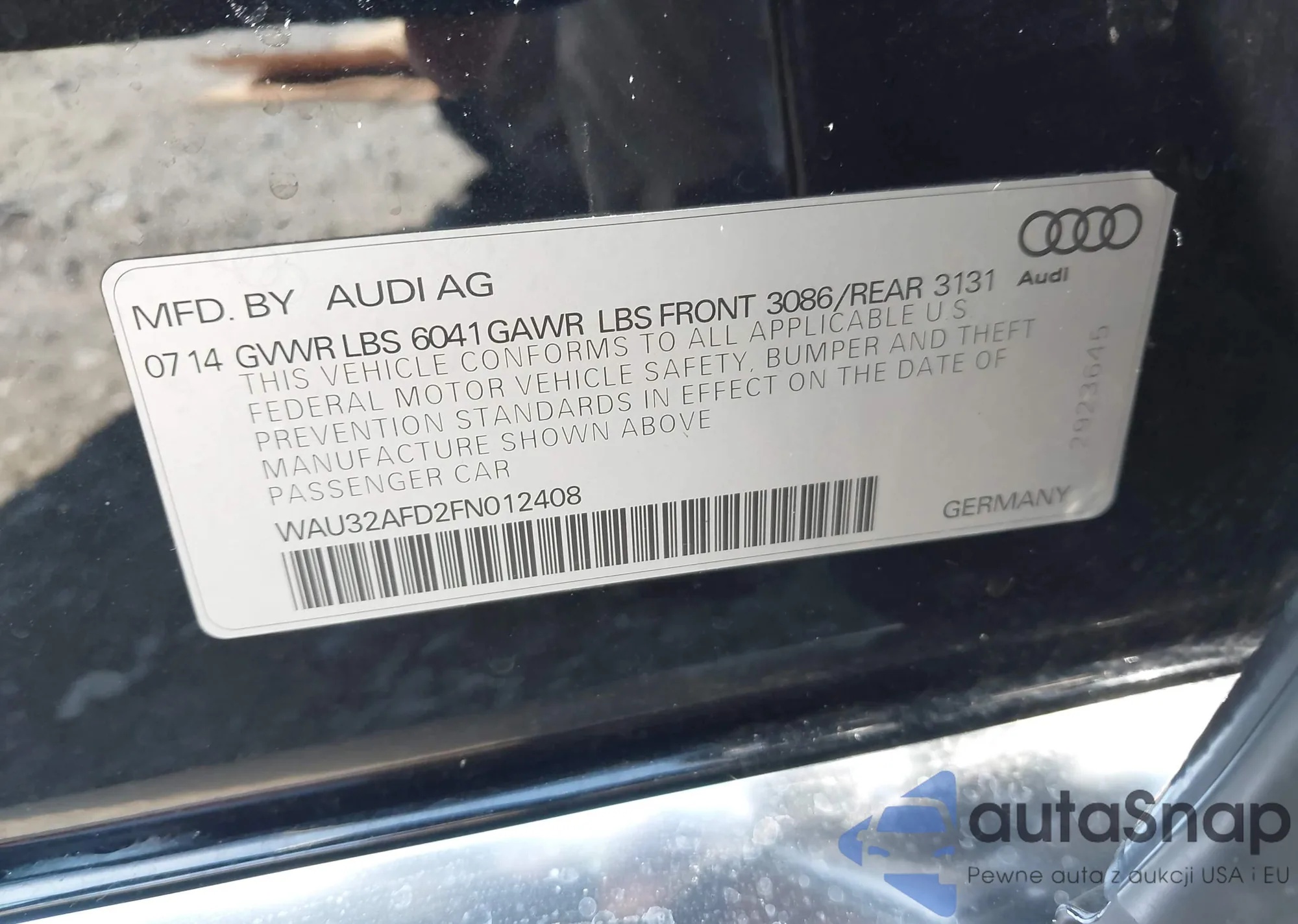 LOT: 43896105 VIN: WAU32AFD2FN012408