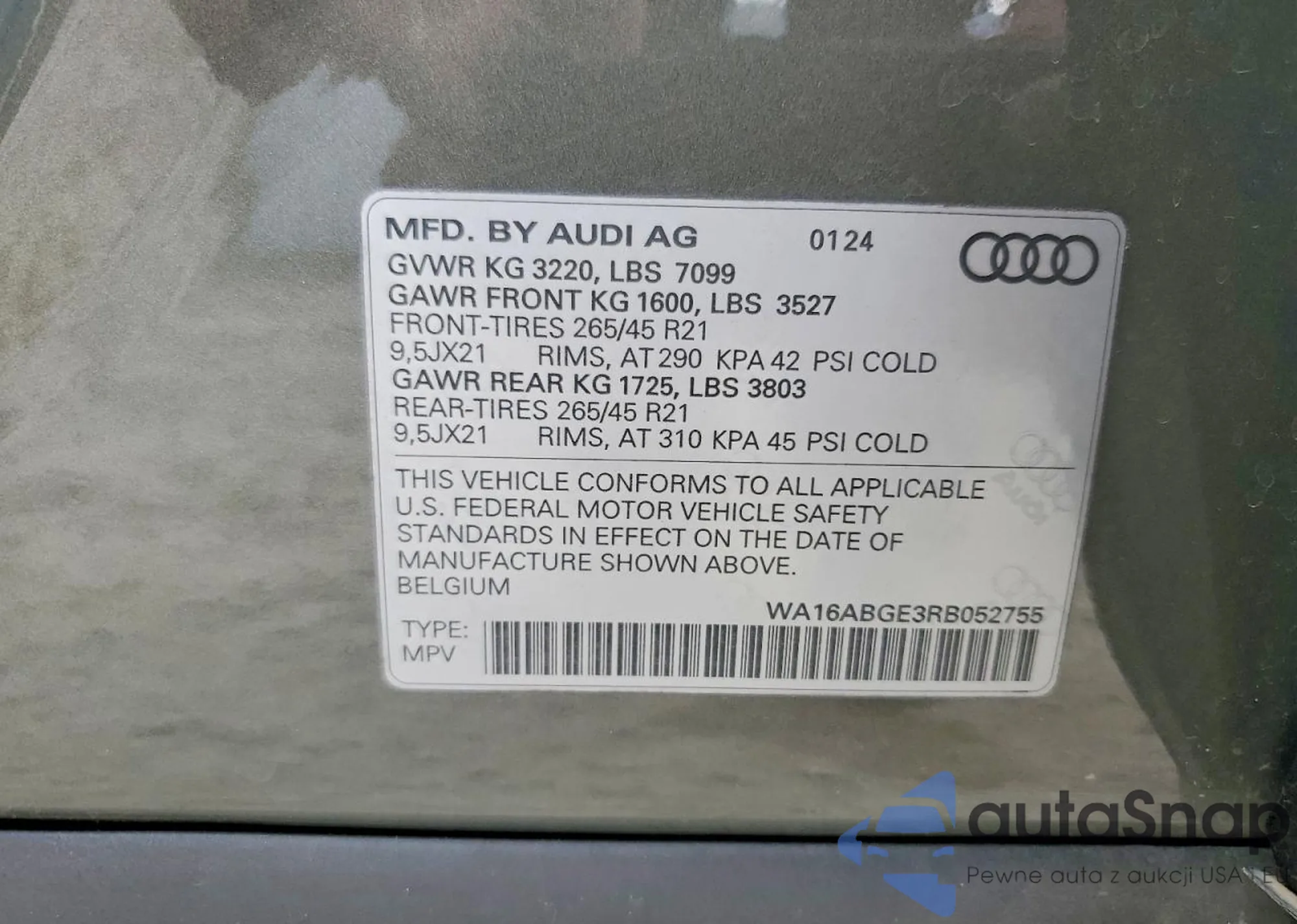 LOT: 76664065 VIN: WA1C4AFY4J2204658