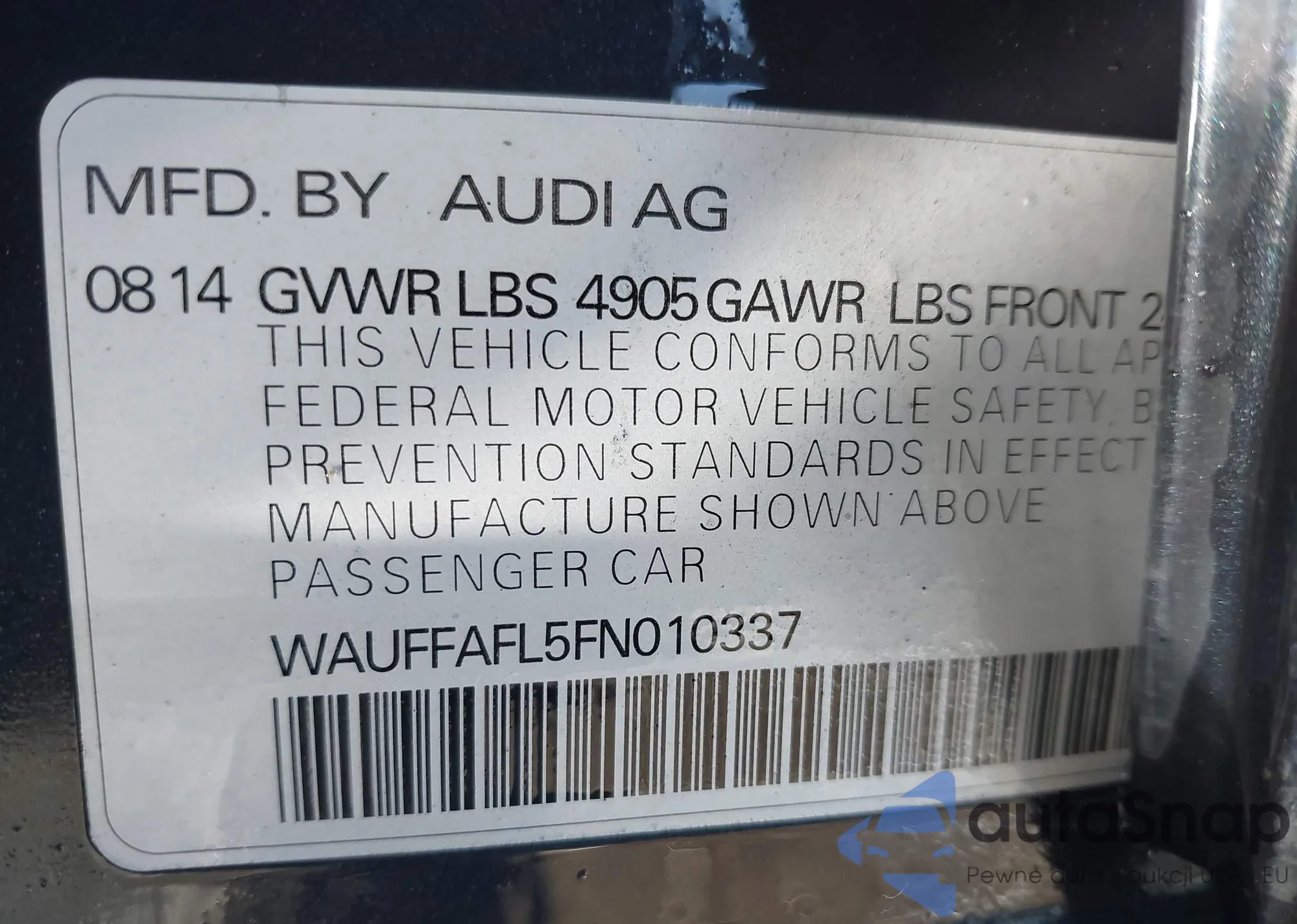• VIN WAUFFAFL5FN010337