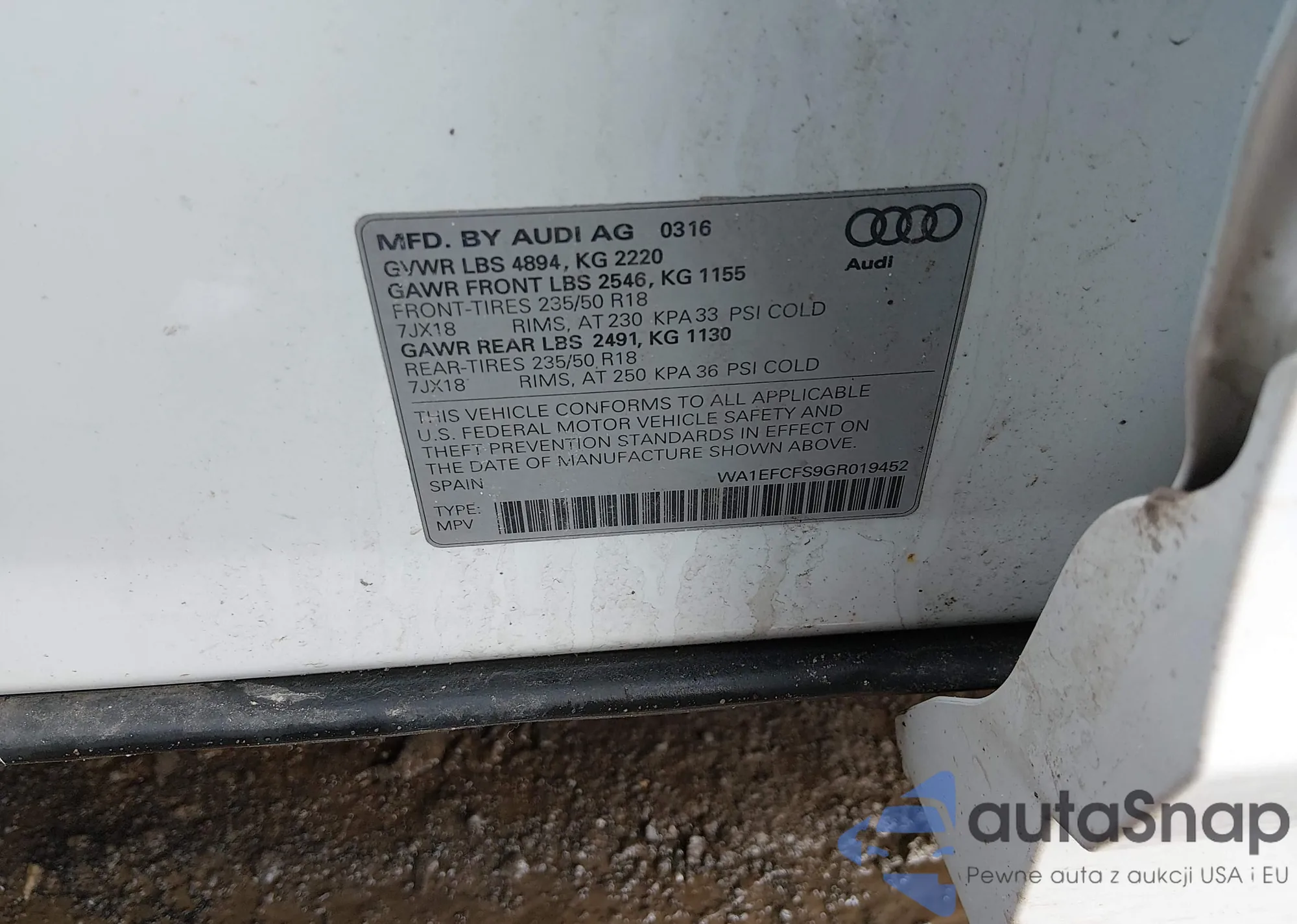 LOT: 44471237 VIN: WA1EFCFS9GR019452