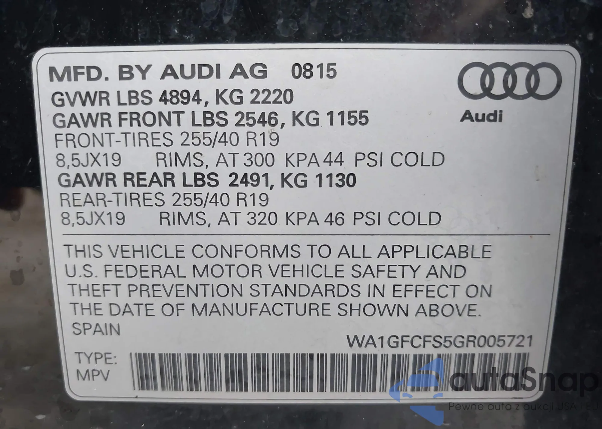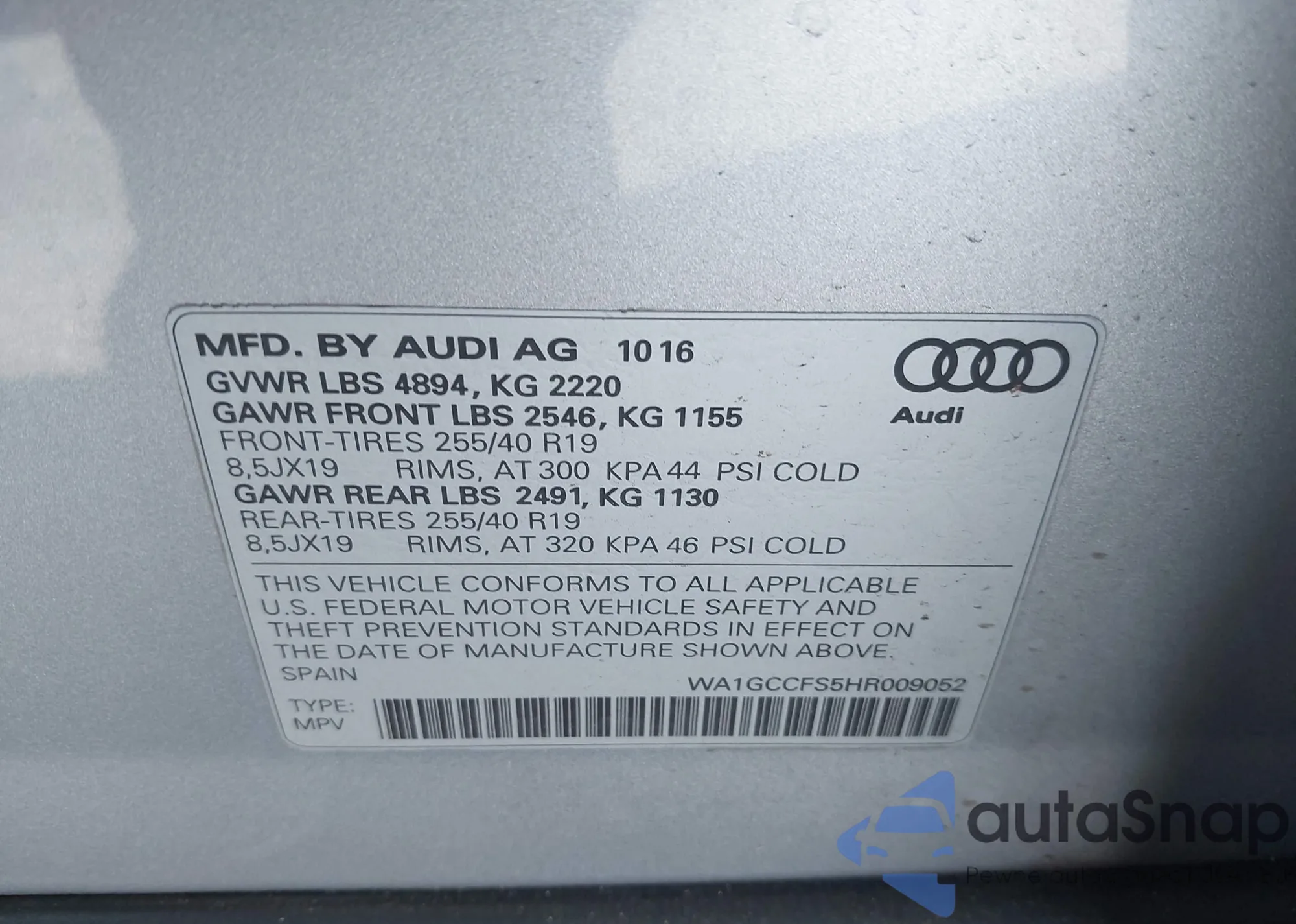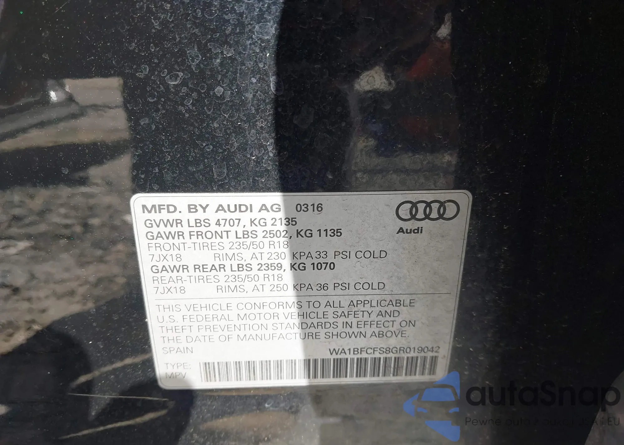 LOT: 44580016 VIN: WA1EFCFS6GR008537