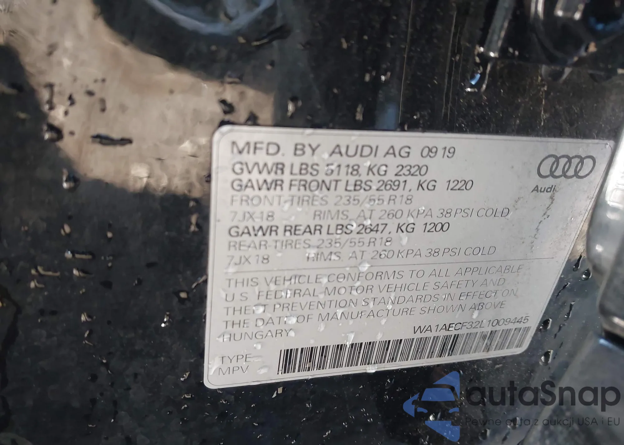 LOT: 44040943 VIN: WA1AECF38L1074865