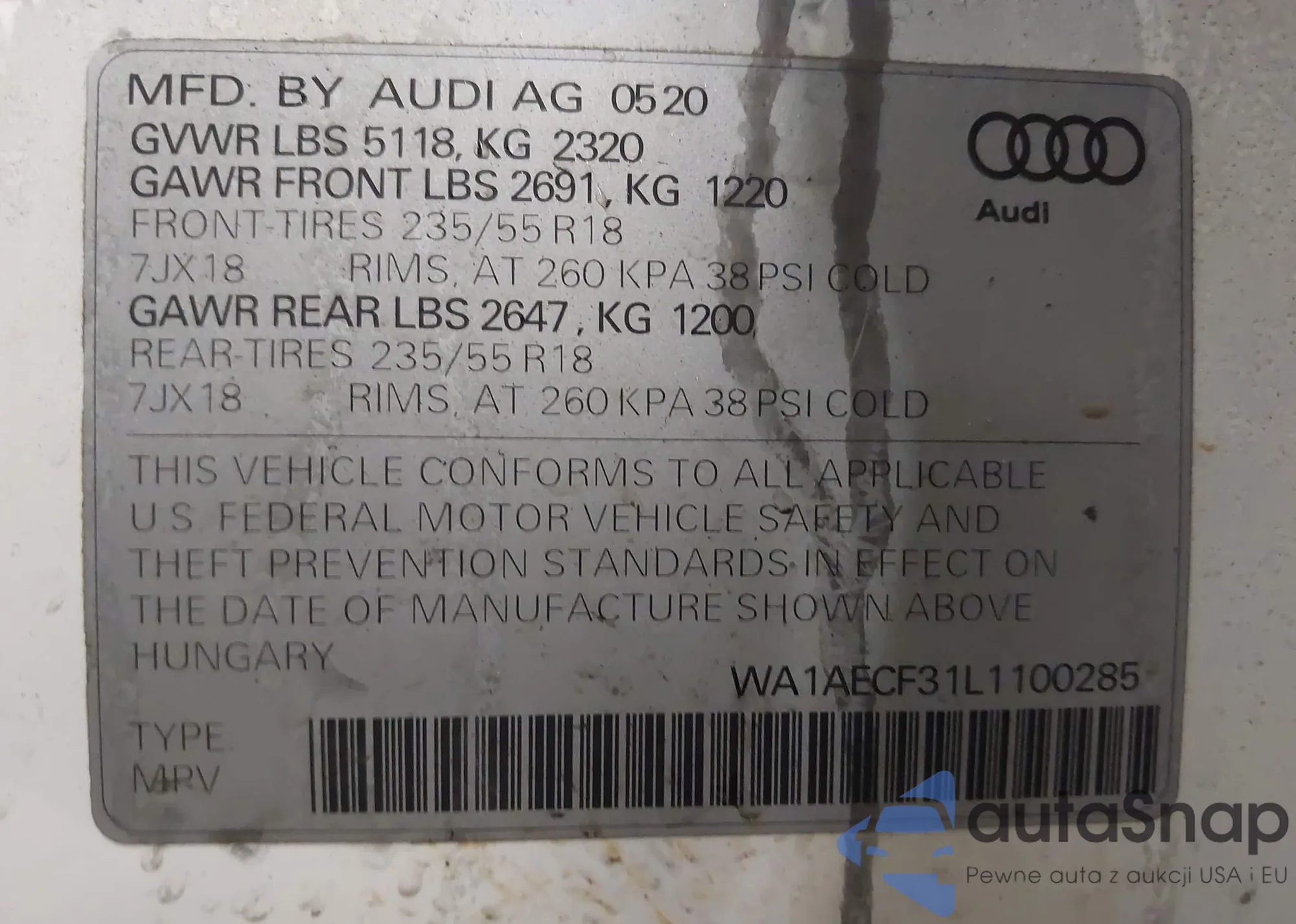 • VIN WA1AECF31L1100285