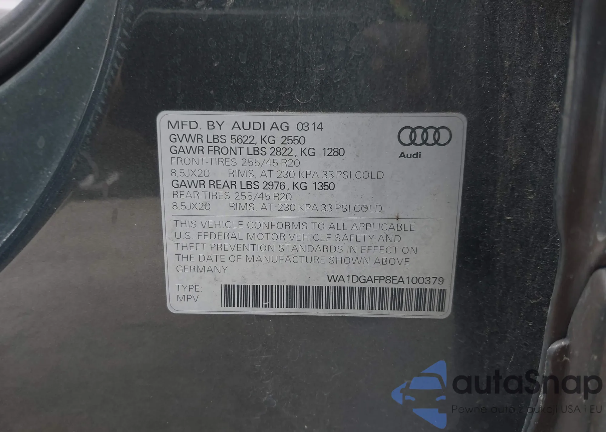 LOT: 44107949 VIN: WA1DGAFP8EA100379