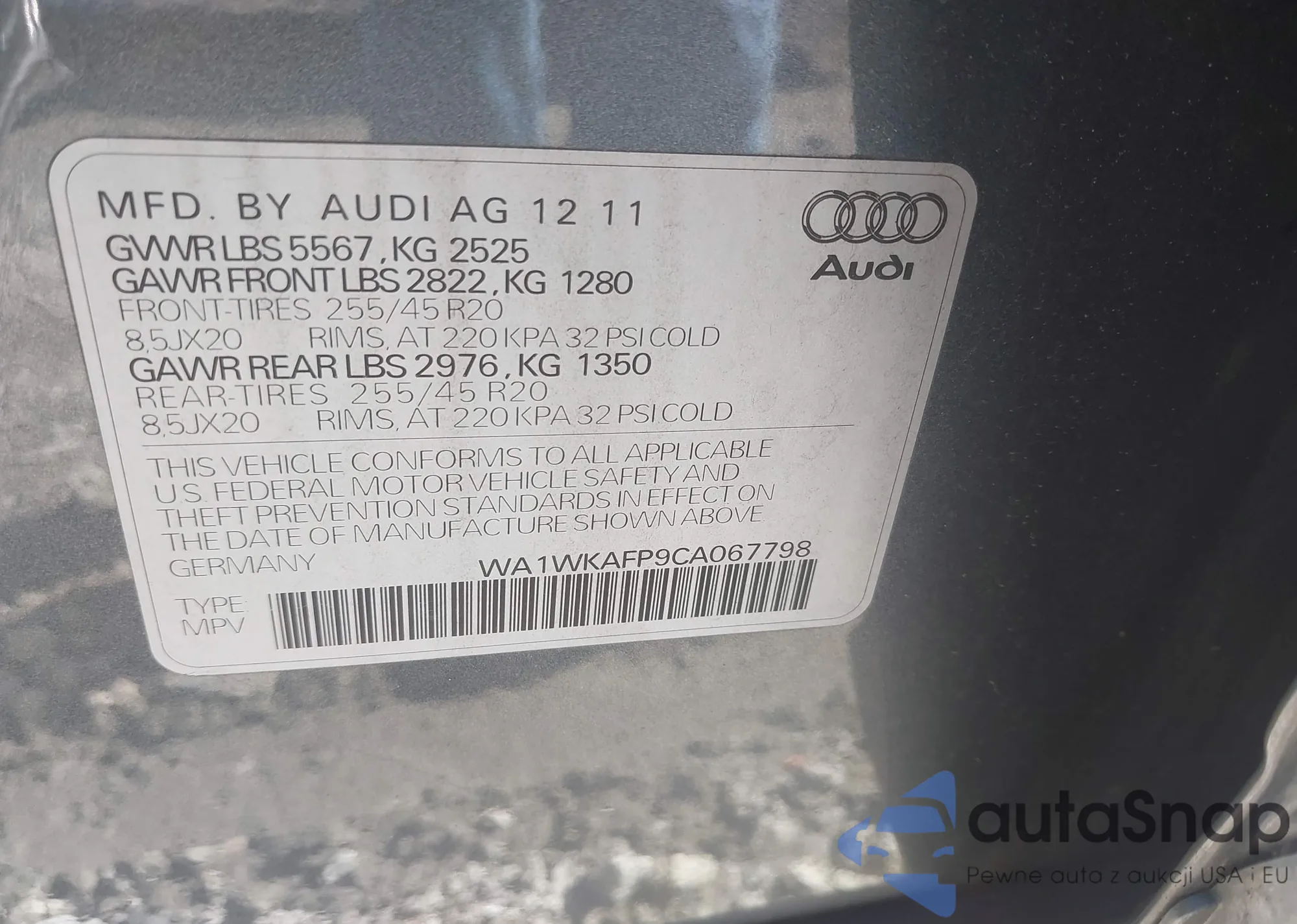 LOT: 44192868 VIN: WA1WKAFP9CA067798