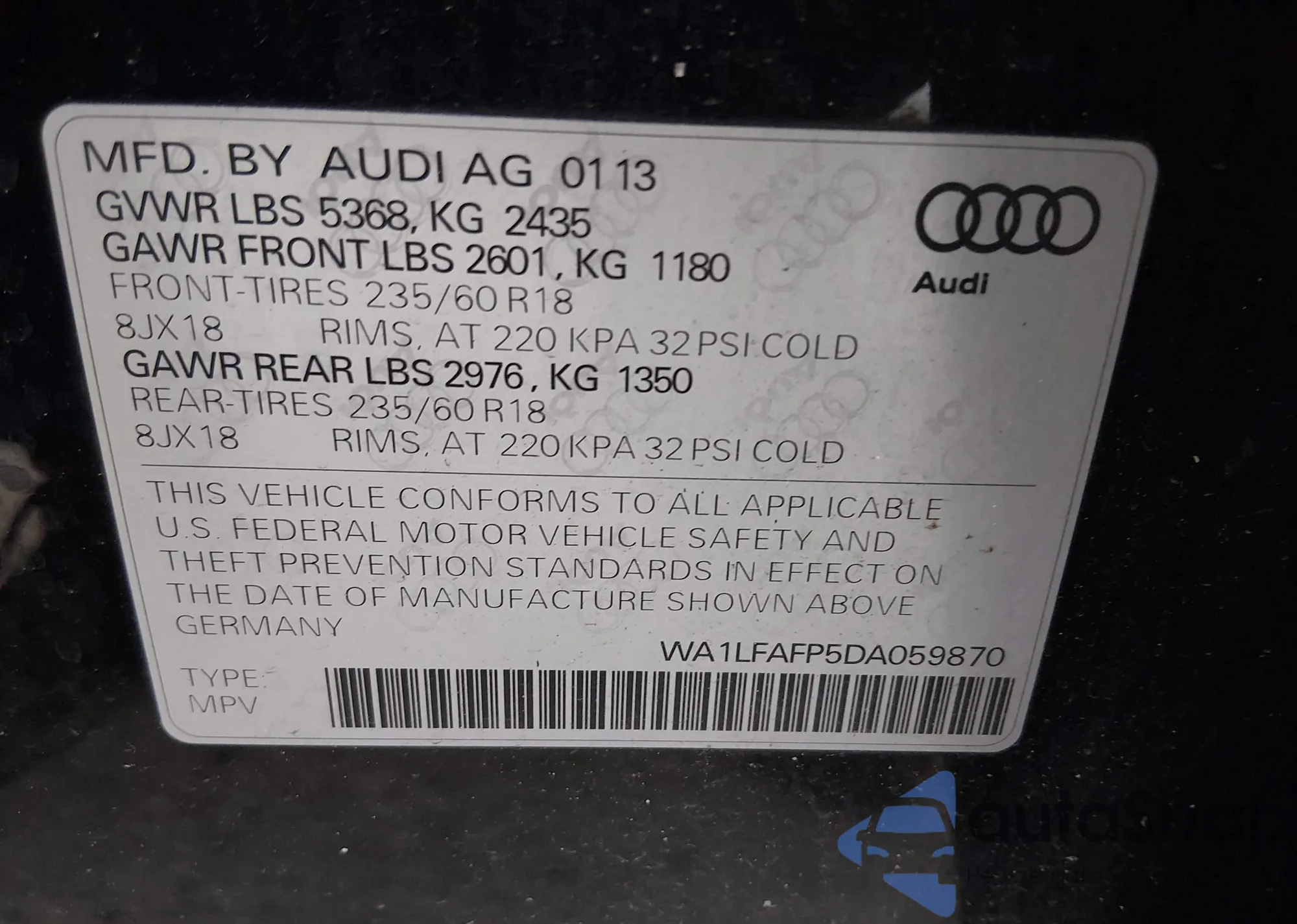 LOT: 44172862 VIN: WA1LFAFP5DA059870