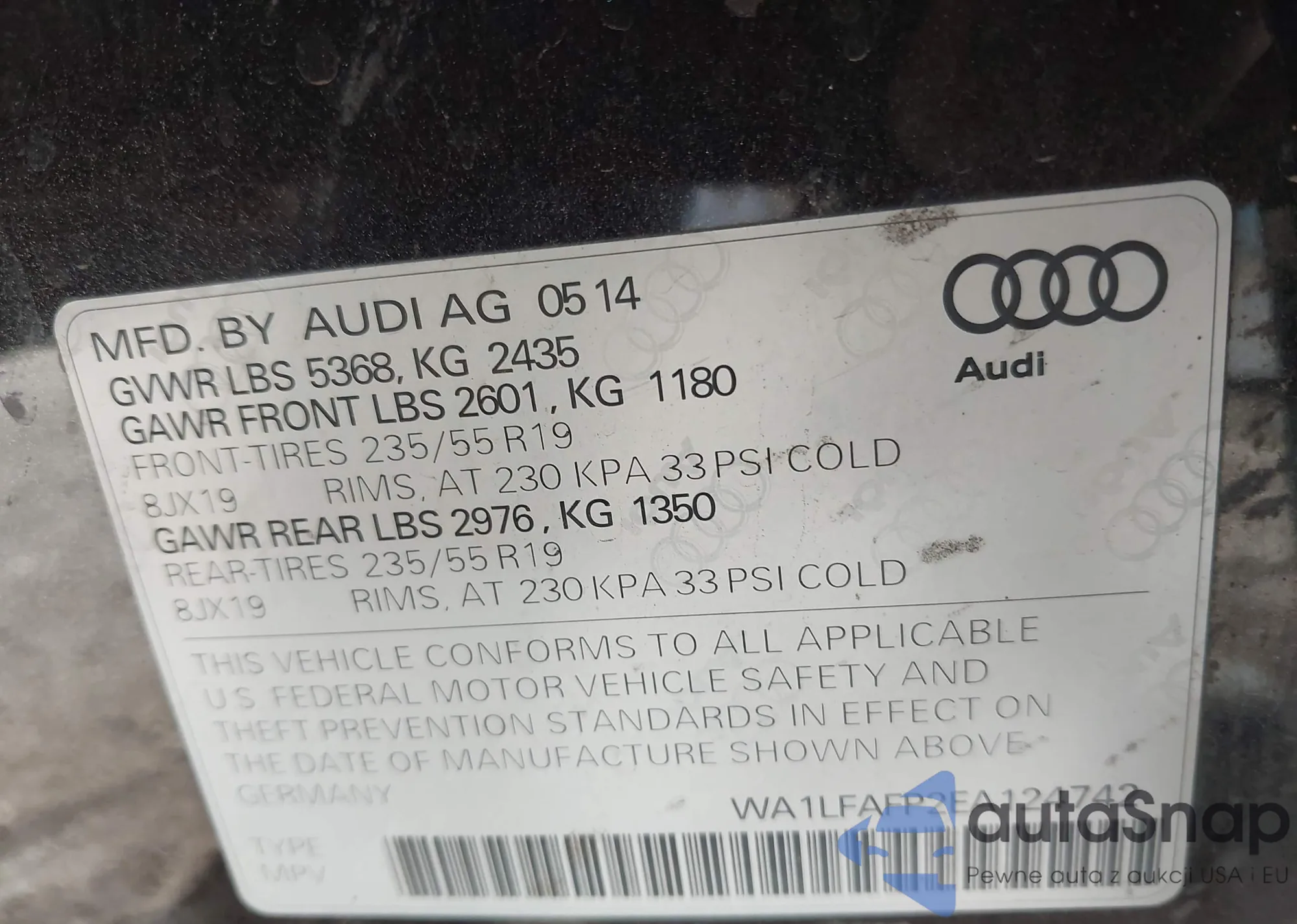 LOT: 44099818 VIN: WA1CMAFP4EA077784