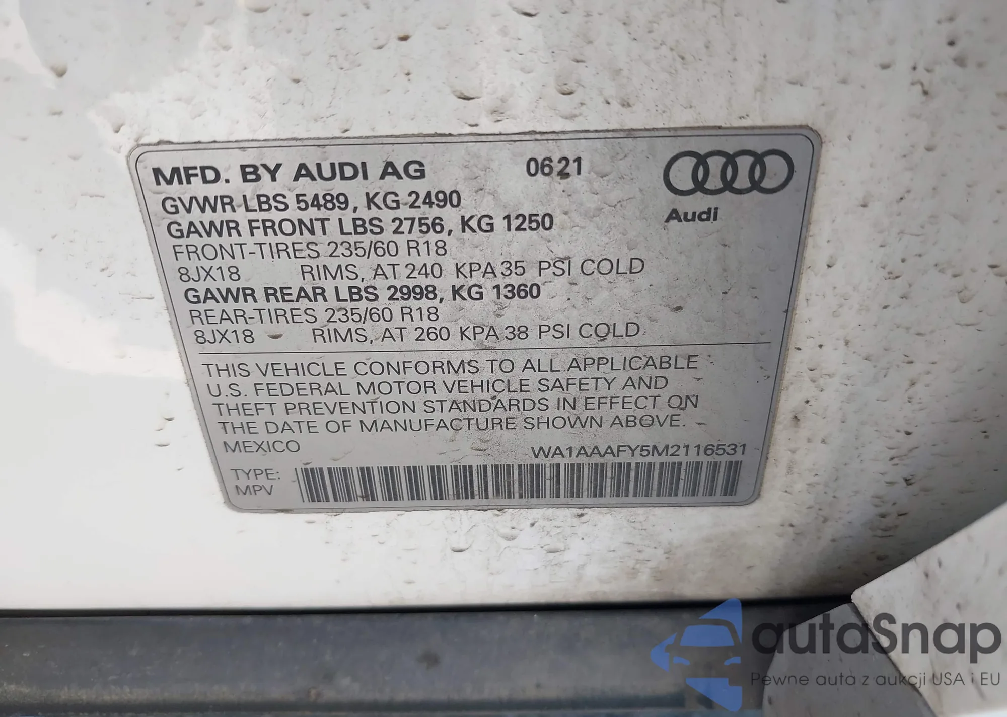 LOT: 44457958 VIN: WA1BAAFYXM2039806