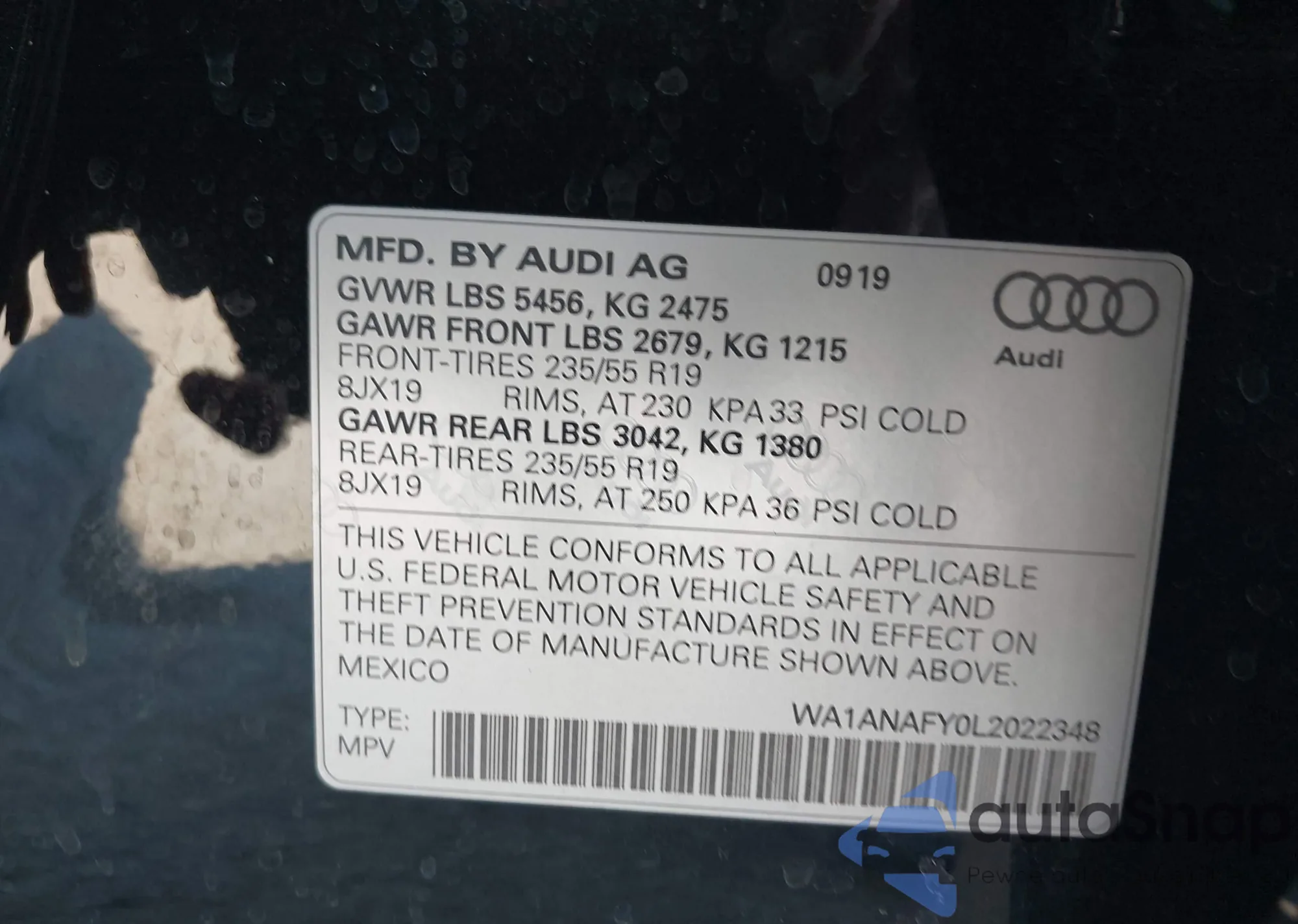 LOT: 44483830 VIN: WA1BAAFY6M2089859