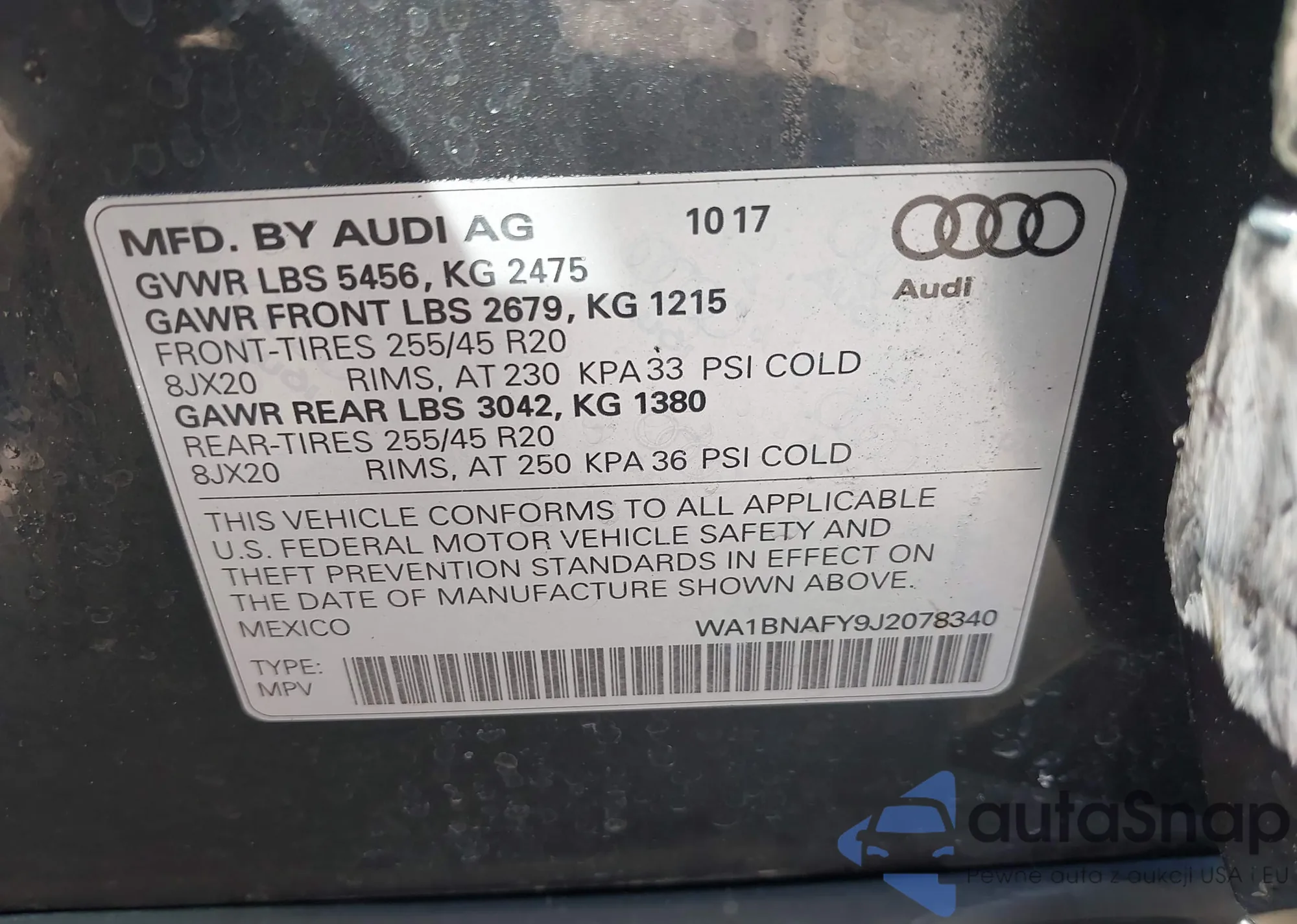 LOT: 44487781 VIN: WA1BNAFY9J2078340