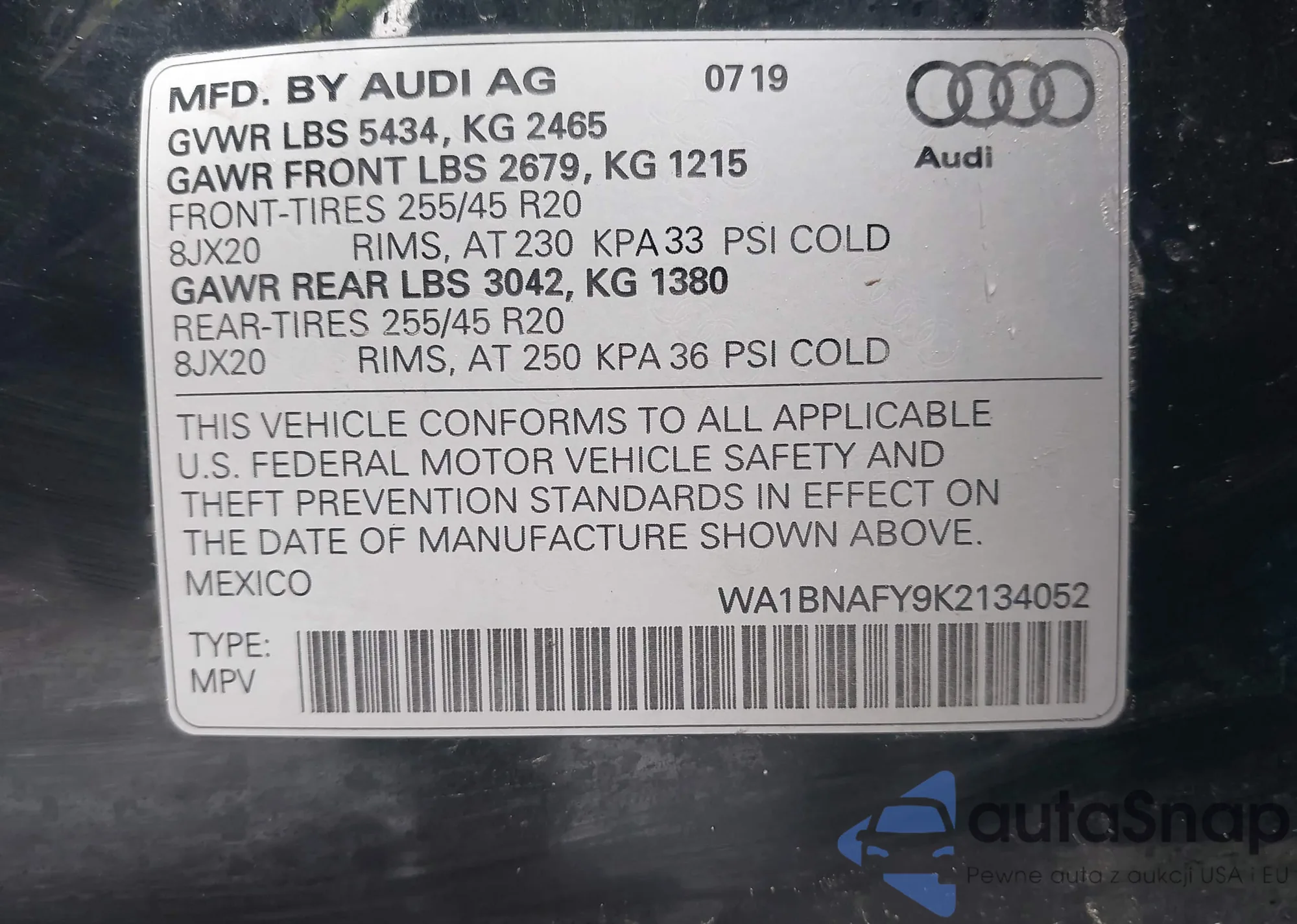 LOT: 44516594 VIN: WA1BNAFY9K2134052