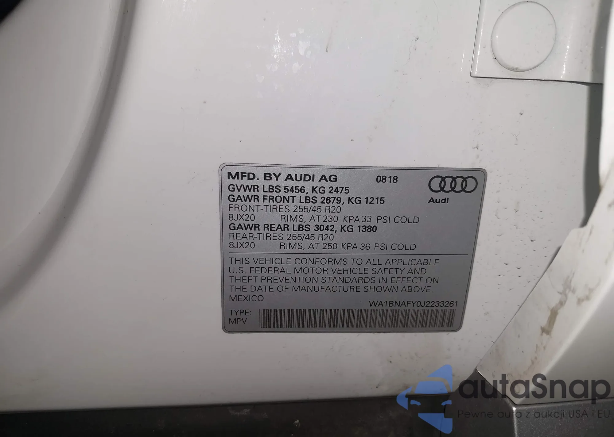 LOT: 44285429 VIN: WA1BNAFY0J2233261
