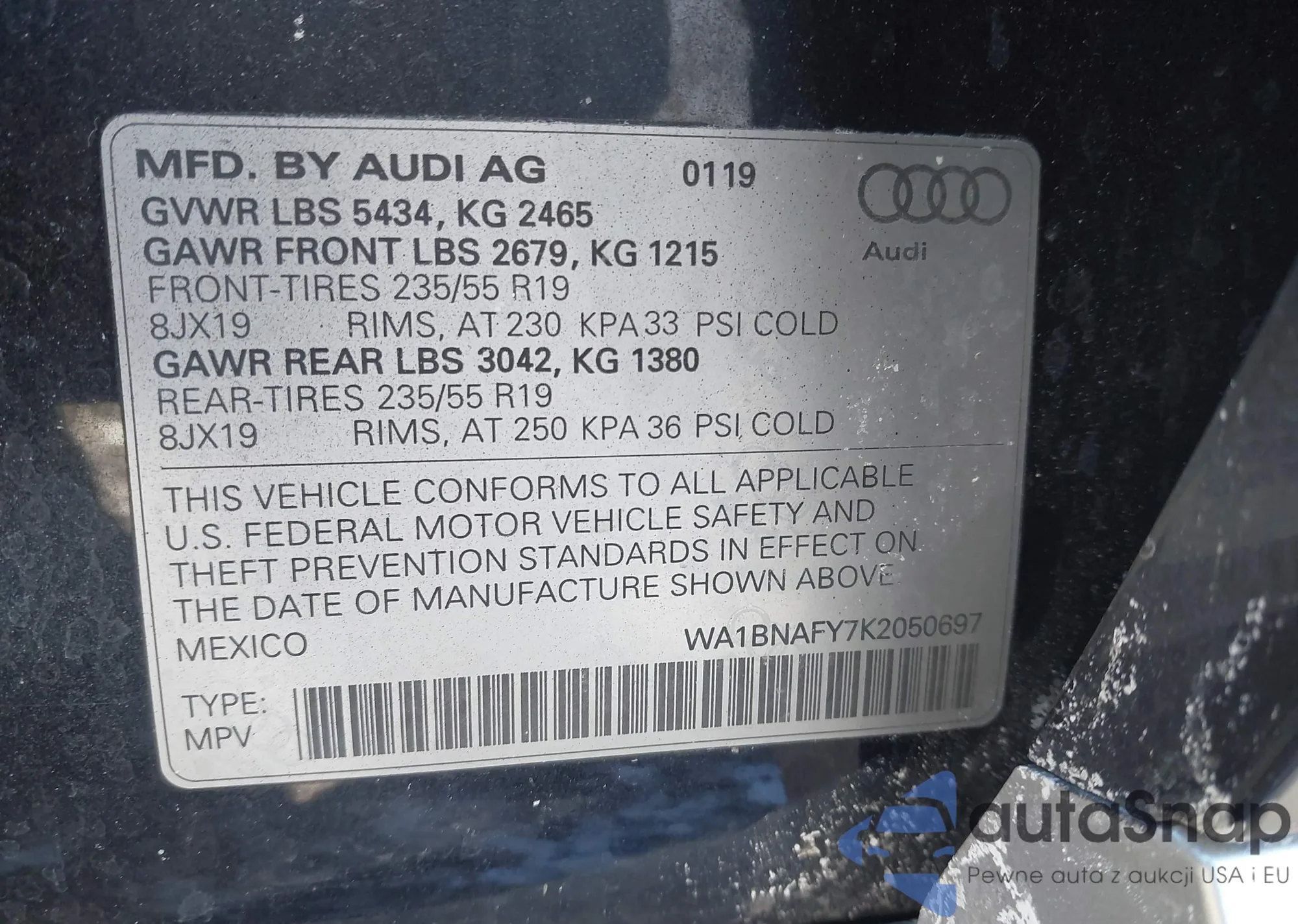 LOT: 44297118 VIN: WA1BNAFY7K2050697