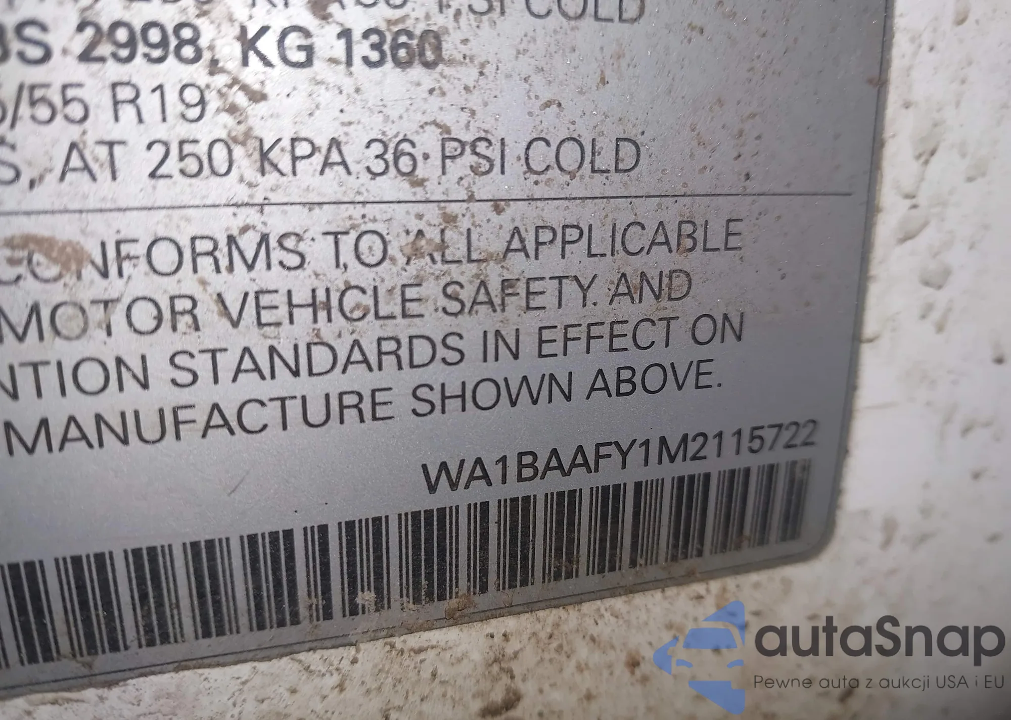 LOT: 44319484 VIN: WA1BAAFY1M2115722