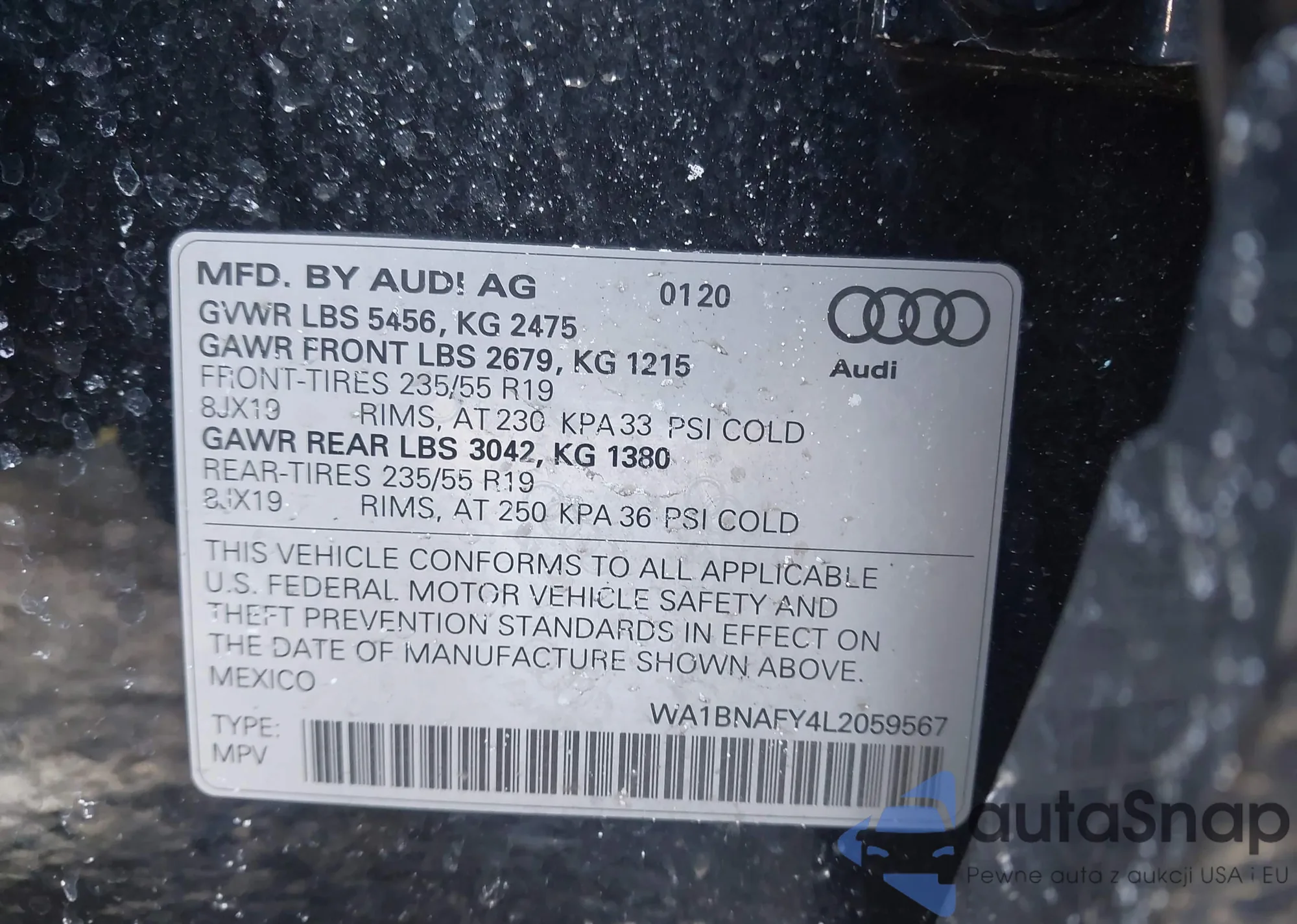 LOT: 44319727 VIN: WA1BNAFY4L2059567