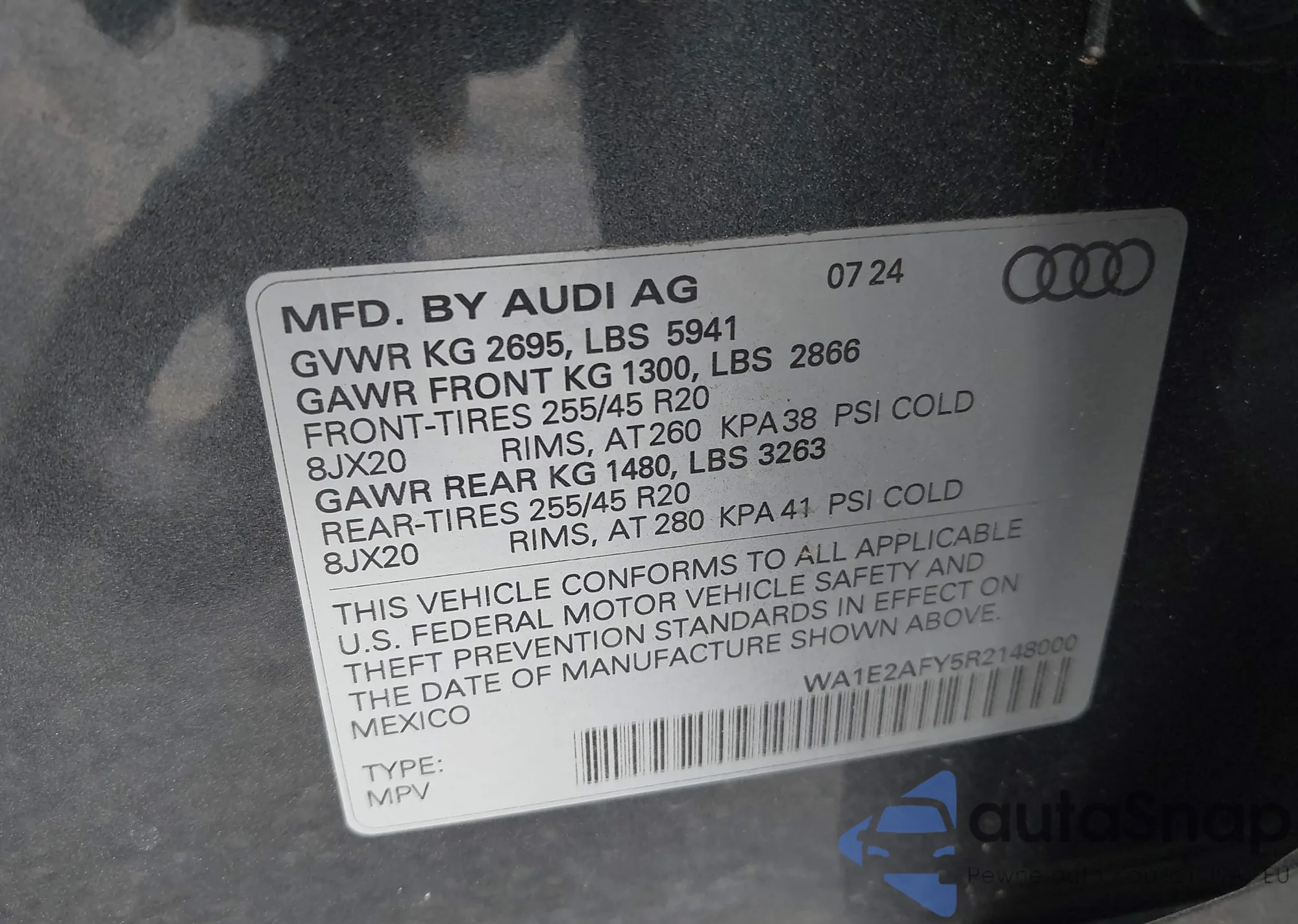 LOT: 44005369 VIN: WA1E2AFY5R2148000