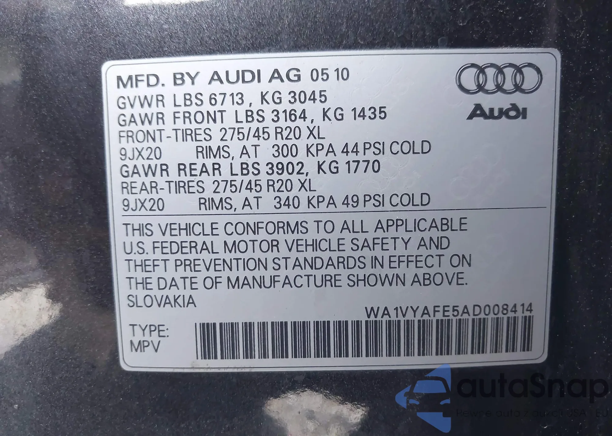 • VIN WA1VYAFE5AD008414