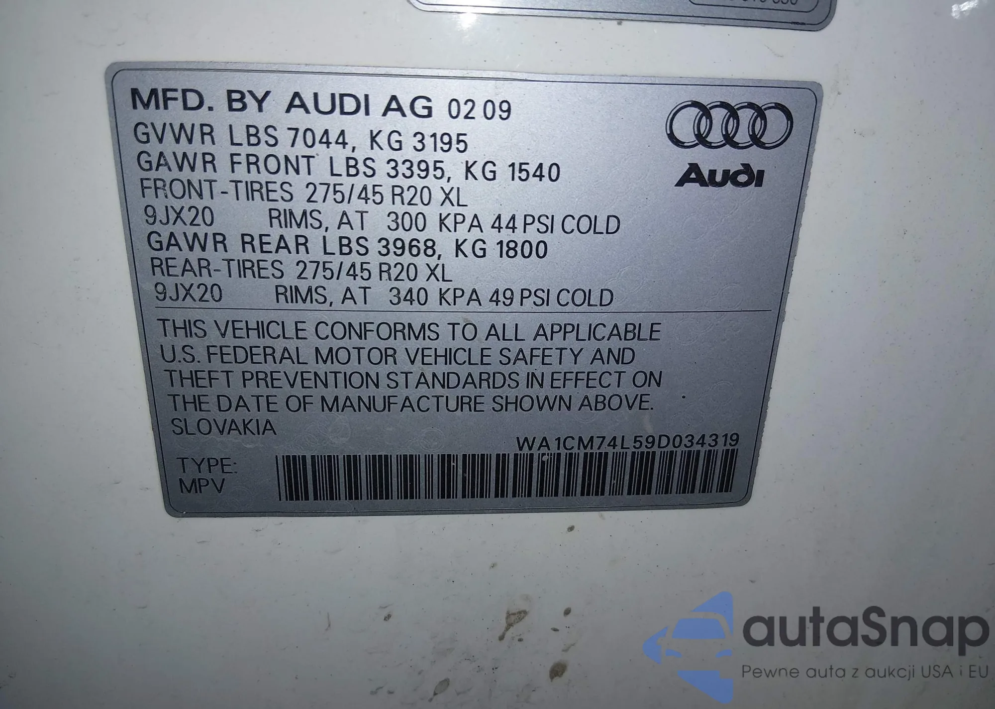 LOT: 44660736 VIN: WA1CM74L59D034319